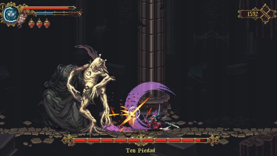 Blasphemous вимагає екшн-платформера, який поєднує швидкий і витончений хак-н-слеш із глибокою та зворушливою розповіддю, забезпечуючи вам неперевершене дослідження нелінійних рівнів.