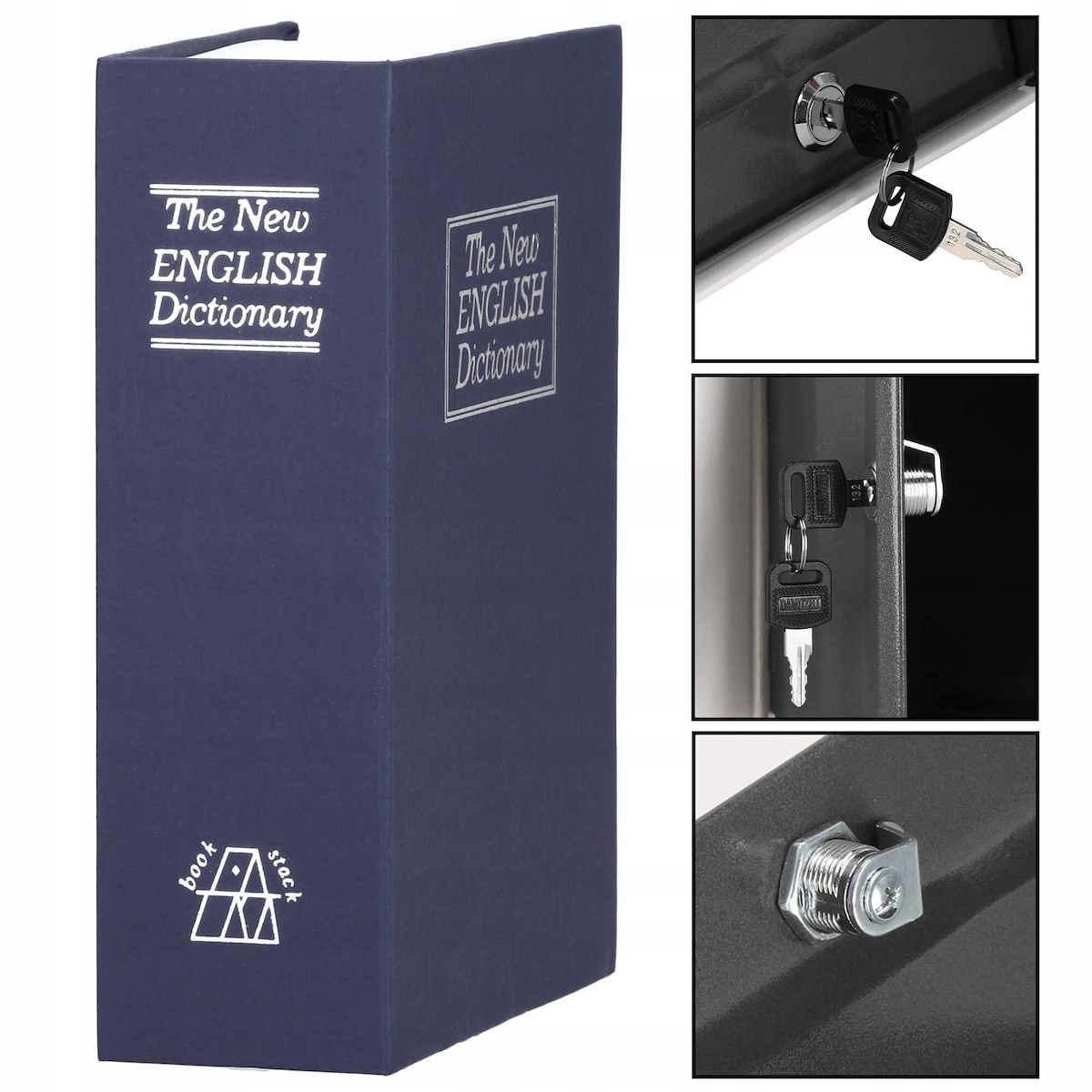 Цей портативний, невеликий сейфзамикається та відкривається ключем. На внутрішній обкладинці встановлено механізм із замком, який відкривається так само, як титульна сторінка книги. У комплектідва ключі. Щоб отримати доступ до ваших цінних речей, потрібно лише кілька секунд!