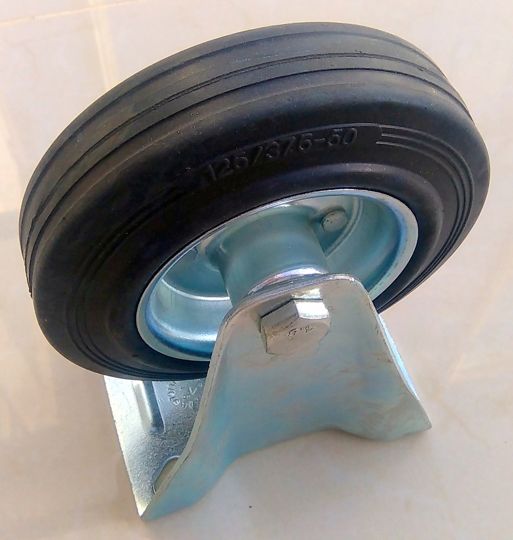 Колеса, встановлені на т.зв. Пластина являє собою комбінацію вилки з пресованого сталевого листа і колеса зі сталевою втулкою і шиною з суцільної чорної гуми. Поворотна головка вилки має подвійні підшипники і захищена від бруду спеціальним пиловим ущільнювачем. Всі металеві елементи комплекту покриті антикорозійним хромоцинковим покриттям.