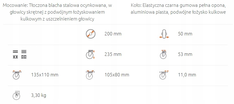 Колесо з гальмом, діаметр 200, алюміній, гума, візок 4 шт., 1200 кг