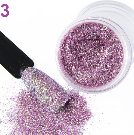 Чудовий фініш із частинок блиску. Поверхня переливається кількома кольорами в залежності від кута падіння світла. Він підійде не тільки для вечірнього, але і для денного укладання нігтів. Мерехтливі відтінки сріблястого, фіолетового та синього з великою кількістю мерехтливих райдужних частинок.