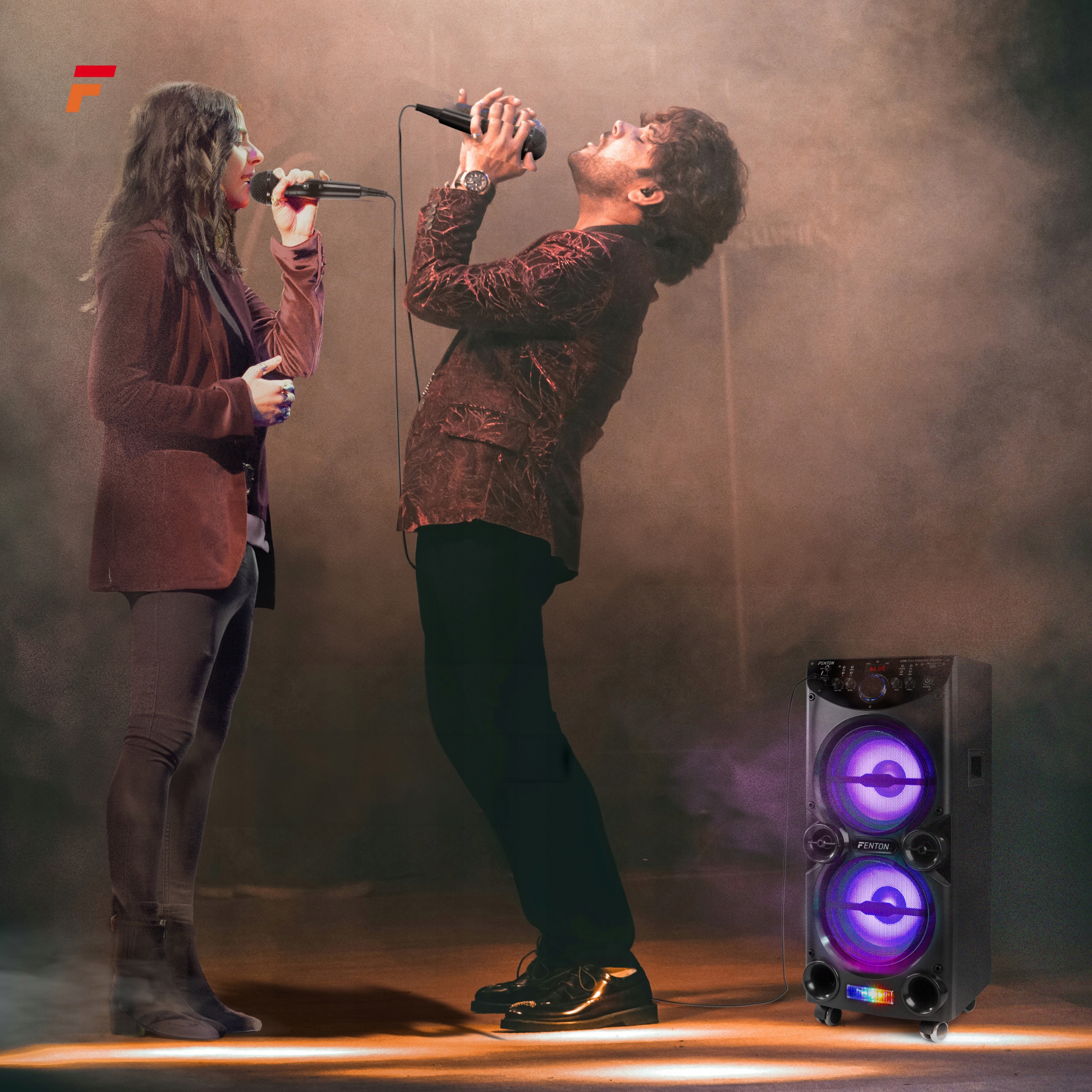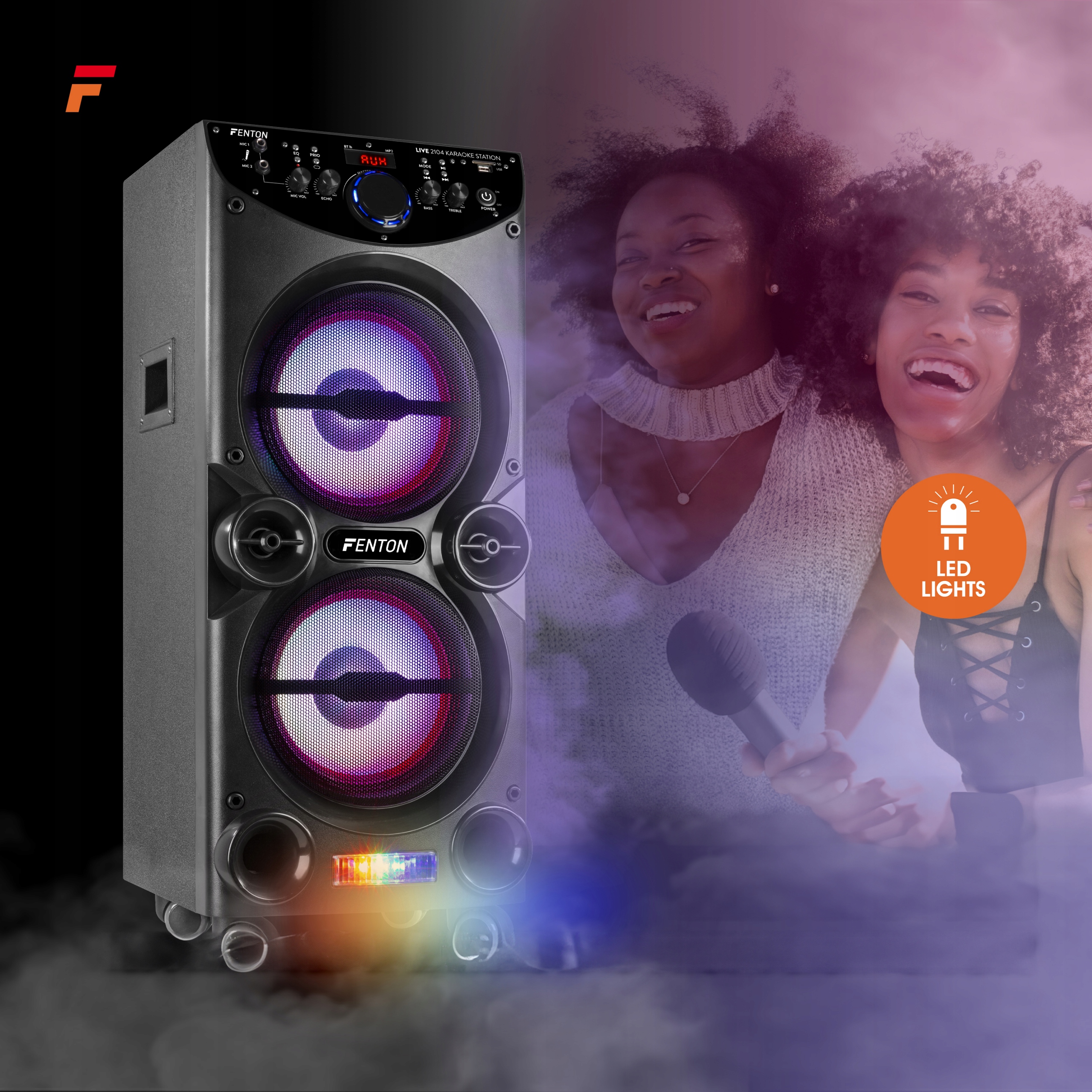 Вечірка буде незабутньою. Bluetooth-колонка з вбудованим підсилювачем 400 Вт оснащена 2 мікрофонами і кольоровими диско світлодіодами. Завдяки функції Bluetooth, MP3-плеєру та лінійному входу, з LIVE2104 ви можете працювати у всіх напрямках, щоб відтворювати свою улюблену музику, звичайно, з можливістю співати та записувати ваші вокальні навички. У набір входить пульт дистанційного керування та два дротових мікрофони. Таким чином, караоке-колонка LIVE2104 — це повний набір, який ви можете використовувати негайно.