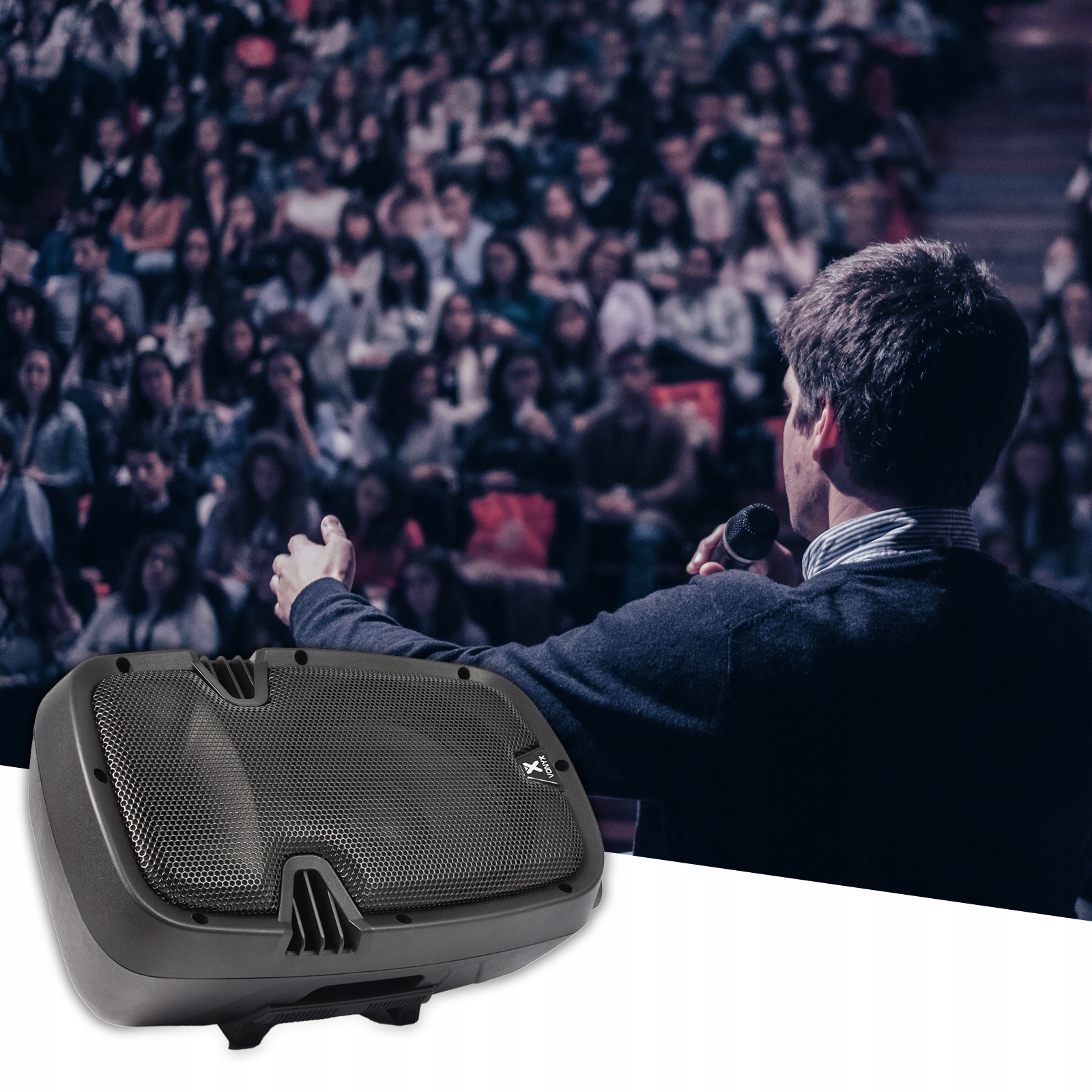 у посиленому корпусі з ABS, оснащений високоякісним підсилювачем 200 Вт, потужним низькочастотним динаміком і динамічним п'єзодинаміком, що забезпечує чудову якість відтворення. Вбудований лінійний вихід дозволяє підключити додаткові активні гучномовці. Міцний, але легкий корпус доповнено жорсткою металевою решіткою, яка ефективно захищає НЧ-динамік. Активний гучномовець може використовуватися як окремий звукопідсилювальний пристрій, на сценічному моніторингу або як елемент всієї звукової системи. Висока продуктивність, легкий і компактний корпус є ідеальним рішенням для використання в барах, ресторанах, невеликих театрах, фітнес-залах, на конференціях і на сцені.