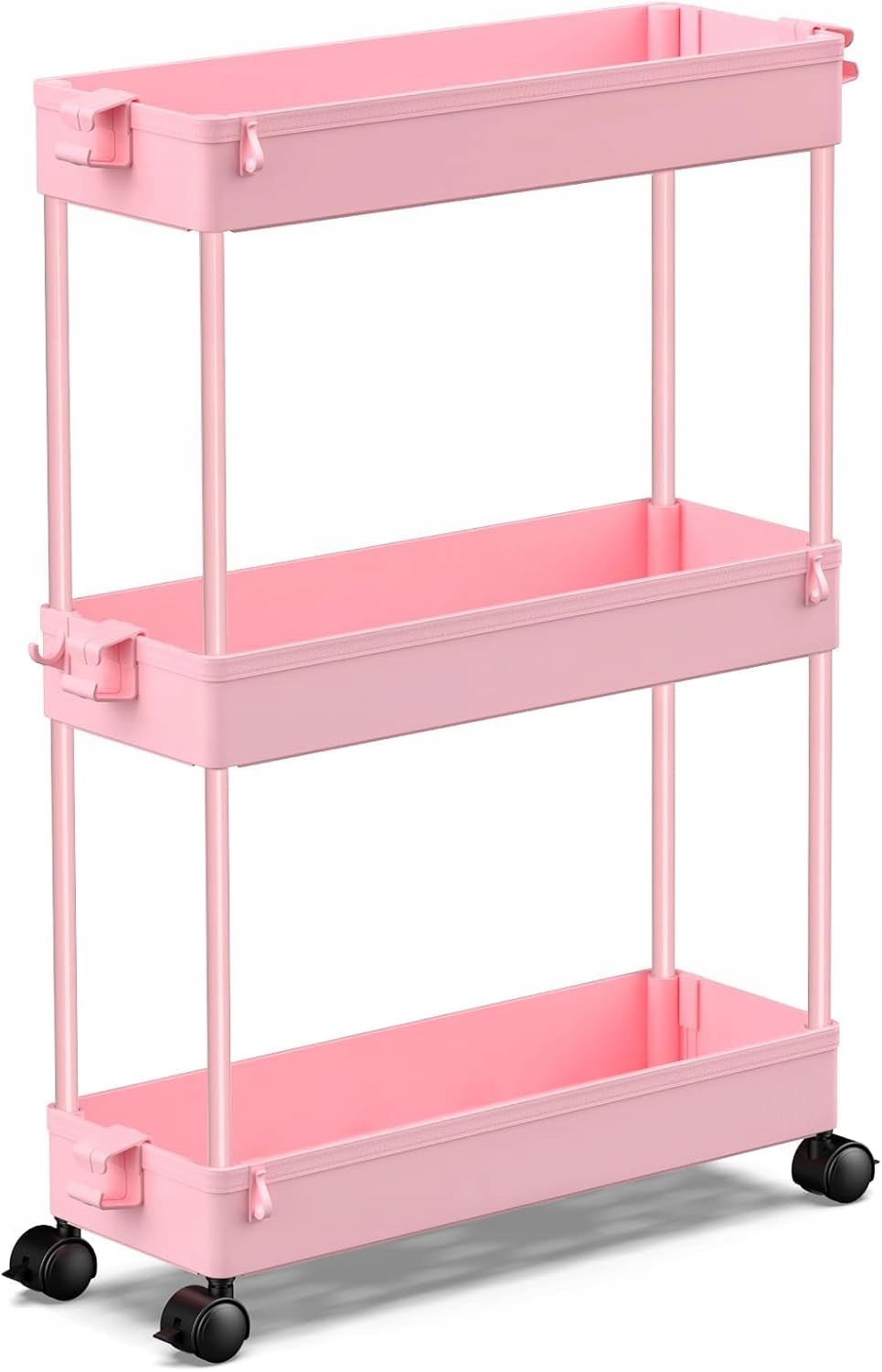 КОЛЯСКА, ОРГАНАЙЗЕР ВУЗЬКИЙ НА КОЛЕСАХ КУХОННИЙ, ВАННИЙ, ОФІСНИЙ РОЖЕВИЙ