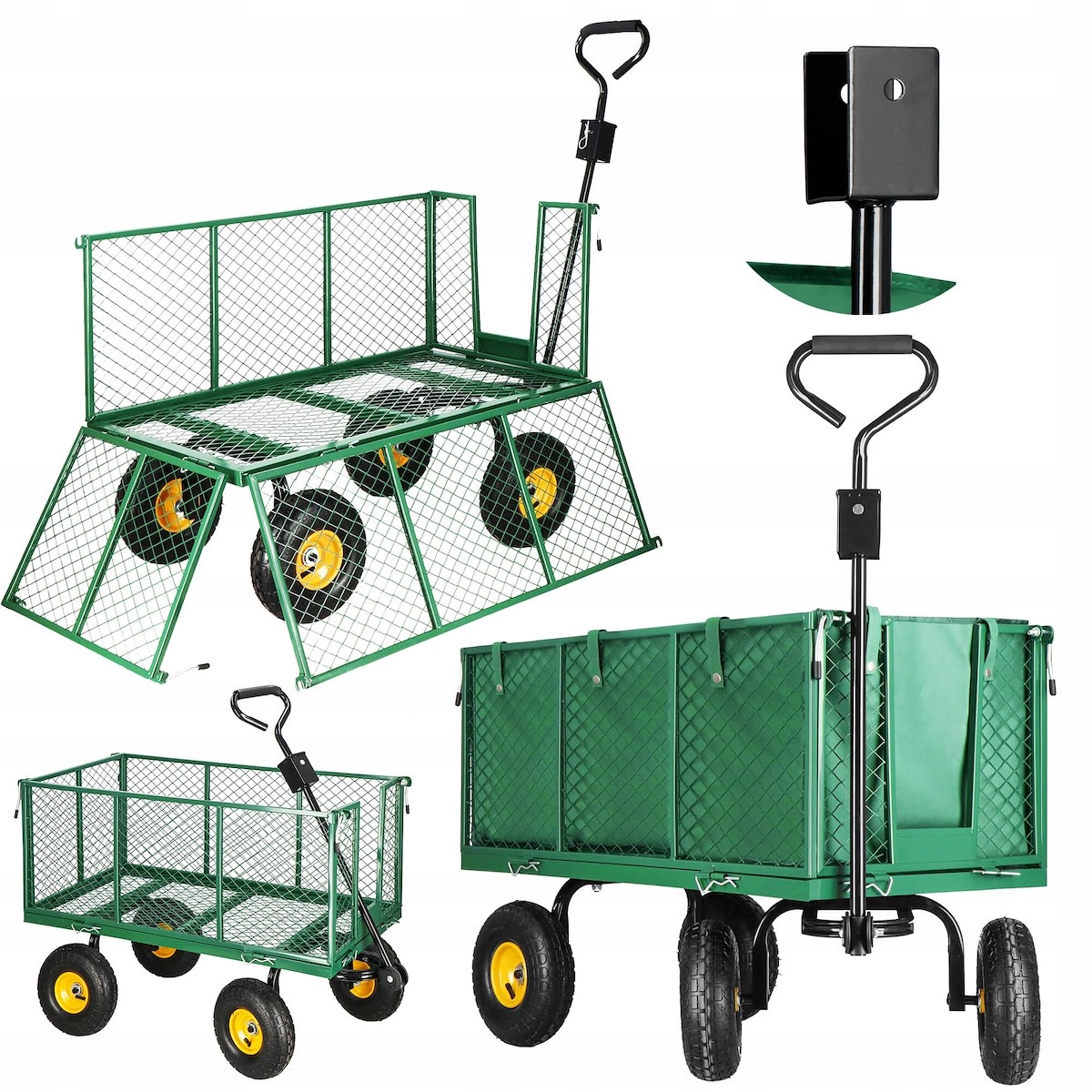 Металевий візок - це корисний садовий інструмент, який полегшить, а в деяких випадках навіть дозволитьвиконувати багато видів діяльності. Поворотна передня вісь, тягова рукоятка, яку можна перетворити на з’єднувач для квадроцикла/трактора, і великі суцільні шинизроблять це ви швидко закохаєтесь у цей продукт і не захочете з ним розлучатися!