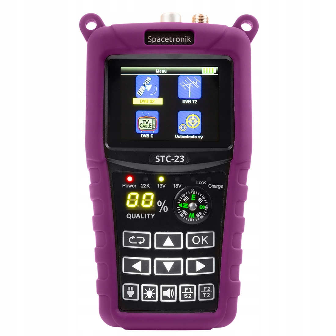 Лічильник STC-23 Combo - це високоякісний вимірювальний прилад, який дозволяє проводити швидкі та точні вимірювання вимірювання супутникових, ефірних і кабельних сигналів DVB-S/S2/T/T2/C/C2. Невеликий розмір робить пристрій зручним і комфортним у використанні використовувати. а додатковий силіконовий чохол забезпечує стабільне захоплення під час роботи. Вбудований кольоровий дисплей 2,4" і зрозумілий інтерфейс роблять його... робити вимірювання надзвичайно просто. Внутрішній акумулятор 7,4 В 2000 мАг забезпечує постійну та безперебійну роботу без необхідності додаткового заряджання, a два зарядні пристрої в комплекті (мережа + авто) дозволяють зарядити лічильник лише вдома, але й у дорозі між установками.