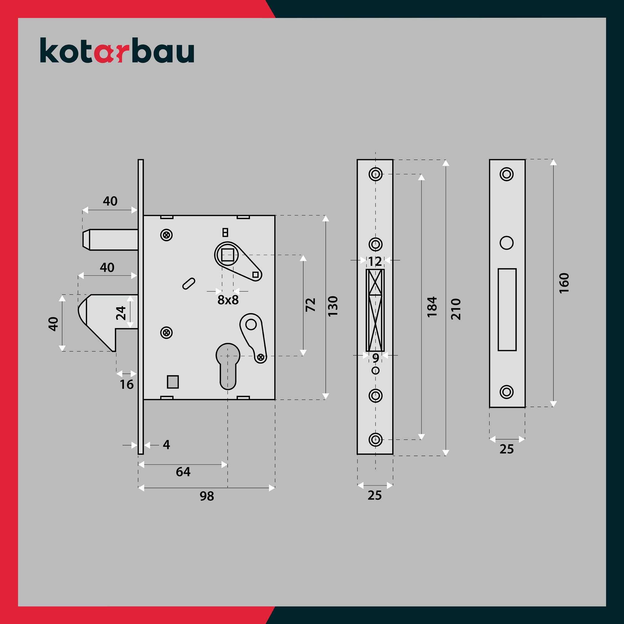- Врізний замок можна використовувати як у правих, так і в лівих дверях. >