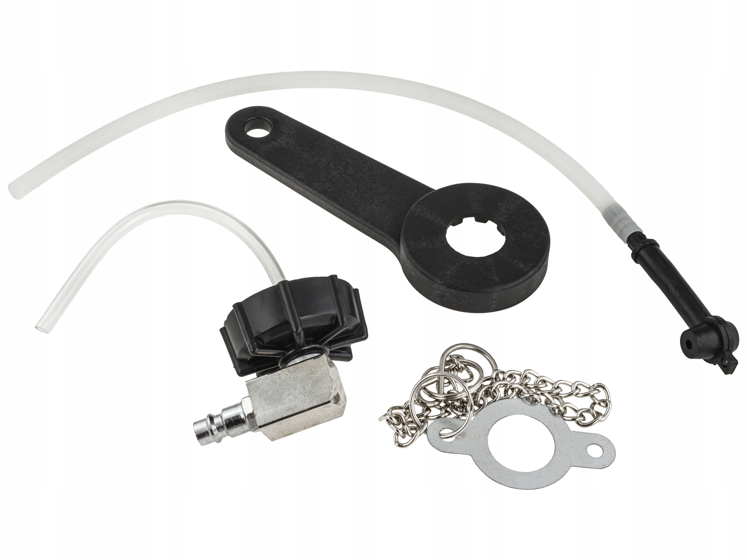 Пристрій для тиску та вентиляції гальмівної рідини за допомогою ручного насоса дозволяє легко та швидко замінити та вентилювати гальмівну рідину однією людиною. підтримує гальмівні системи з ABS та ESP та електрогідравлічними гальмами. Набір оснащений кутовим підходящим , що полегшує доступ до жорстких місць для -прочищення та забезпечує більш зручну роботу при вентиляції.