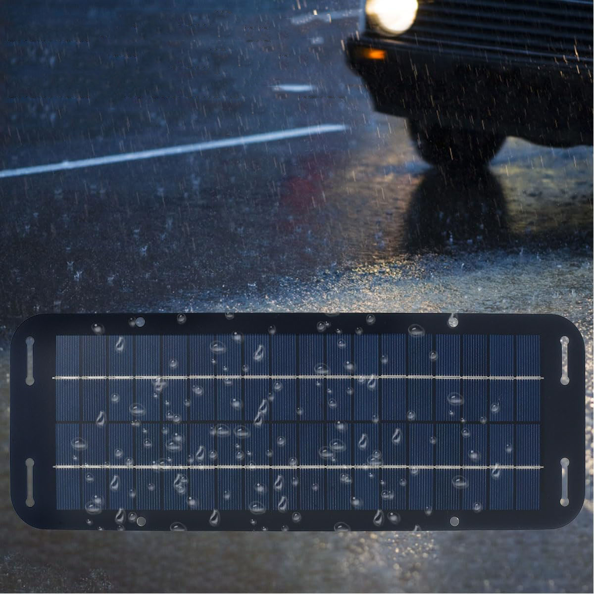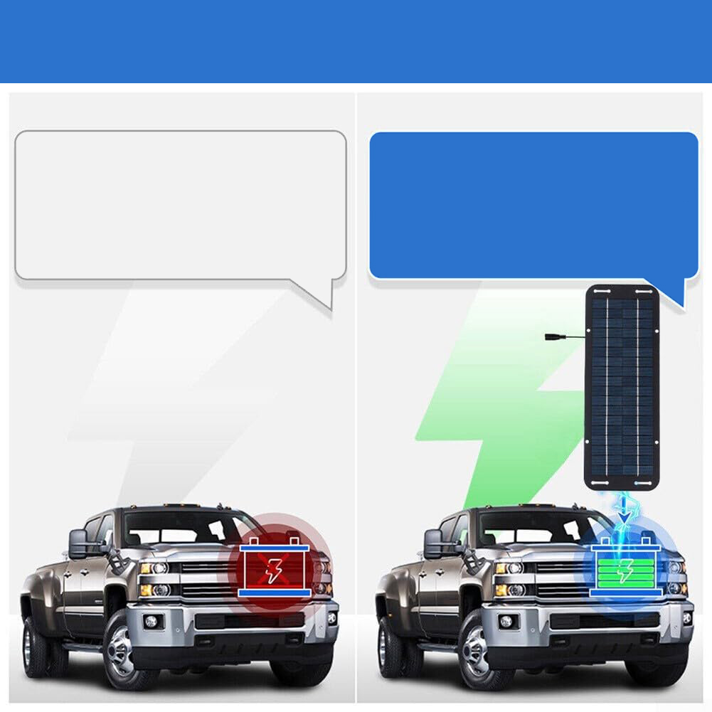 ☀ 【Профілактика зворотного розряду】 , оснащена вбудованими діодами, що замикаються, ця сонячна панель запобігає зворотному розряді, залишається зарядженим безпечно та ефективно. Легка установка та відсутність технічного обслуговування прикріплюють його до переднього лобового скла з прикріпленими присосними чашками або до сонцезахисного крему з смужками, щоб забезпечити оптимальне опромінення сонця.