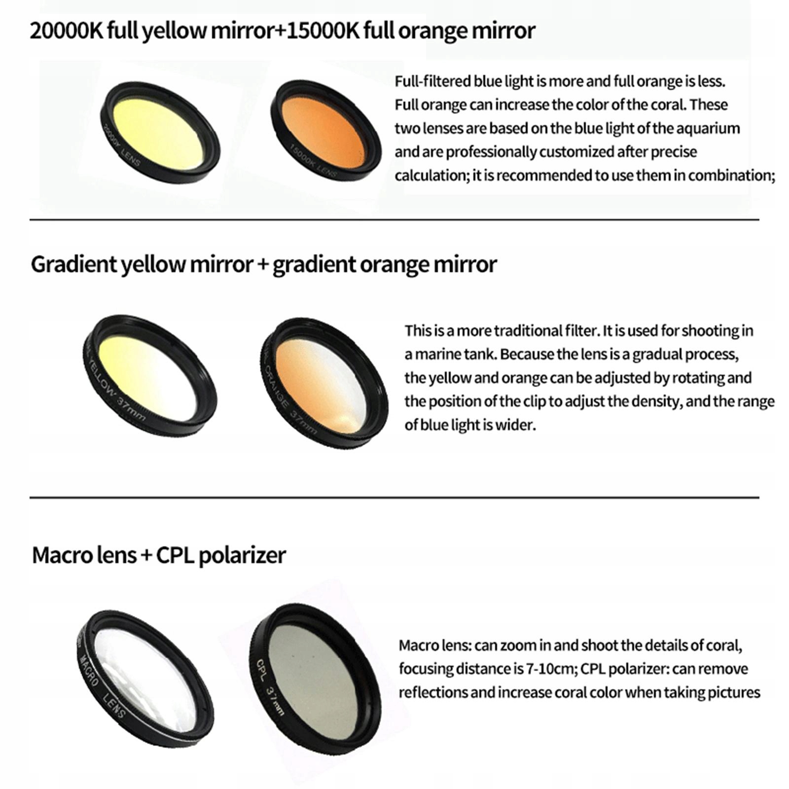 6 лінз включають: 15000k Orange / Gradual Orange / 20000K Yellow / Gradual Yellow / Macro / CPL