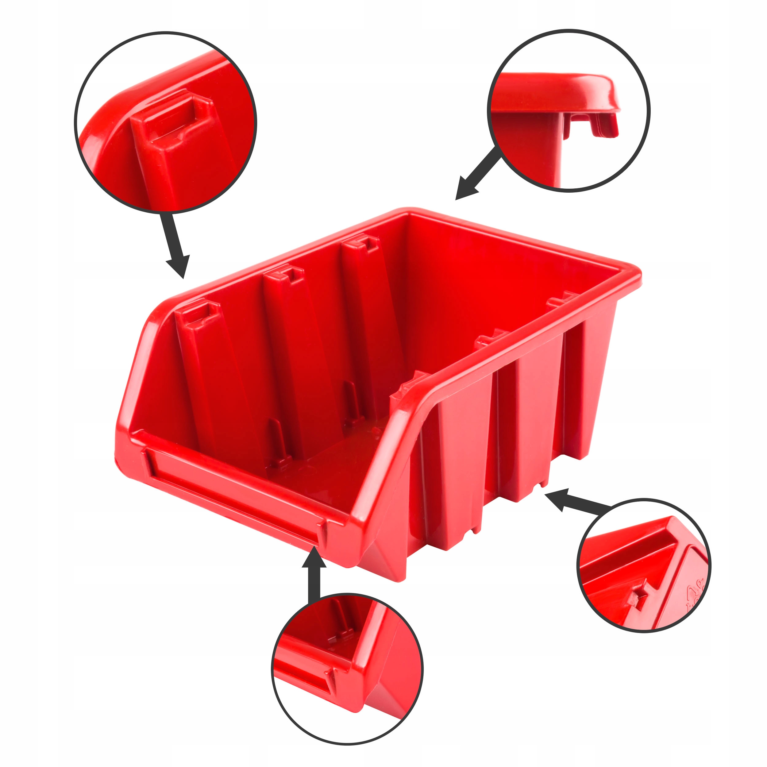 Ергономічна форма контейнерів дозволяє їх штабелювати. Використана рама також дозволяє їх складати, завдяки чому ми можемо значно заощадити простір положення, покращити доступ до дрібні елементи. Продумана конструкція дозволяє вставляти по одному контейнеру у другому. Відкрита передня частина забезпечує легкий доступ вміст контейнера. Ємностібанки повісьтена інструментальні дошки, доступні в нашій пропозиції.