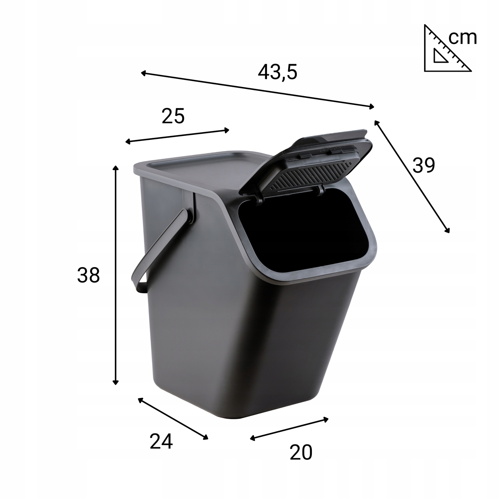 Завдяки своїм маленьким розмірам він також підійде ідеально підходить для тумби під раковину. Його модульність дозволить об'єднати його в потрійний набір, який можна складати один на інший, тому він займе мало місця. Заокруглені краї контейнера полегшують очищення, тому використовувати одноразові пакети не потрібно.