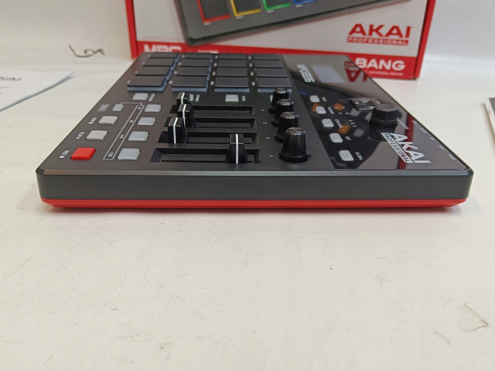 - Подушки: 16 динамічних накладок, чутливих до тиску; кольорове підсвічування RGB, 4 банки, доступні за допомогою кнопок Pad Bank,