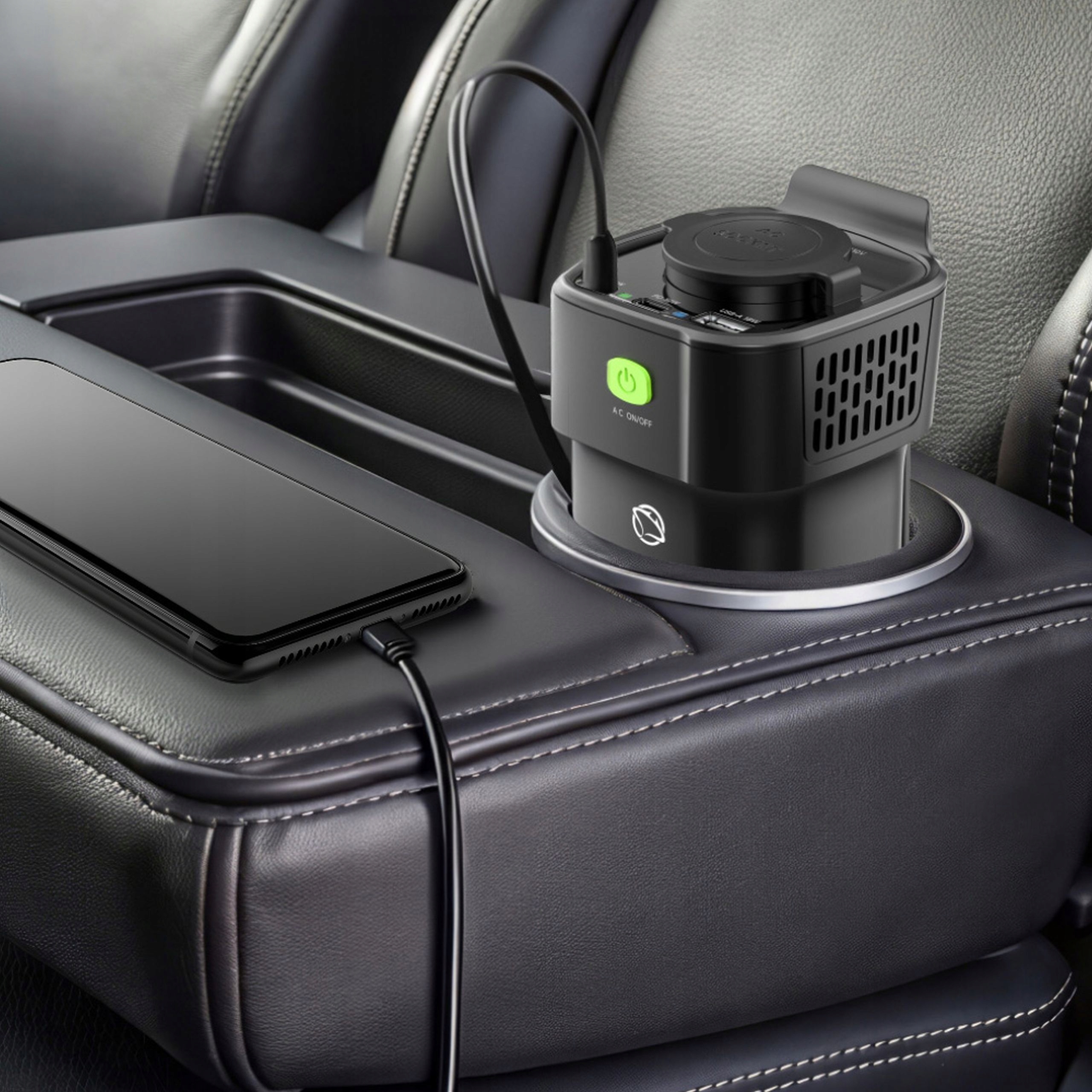 Компактна форма перетворювача робить пристрій ідеально вмістити у тримач чашки в машині. Завдяки цьому, це вимагає мінімальної кількості місця і зручно використовувати, забезпечуючи легкий доступ до всіх портів та функцій.