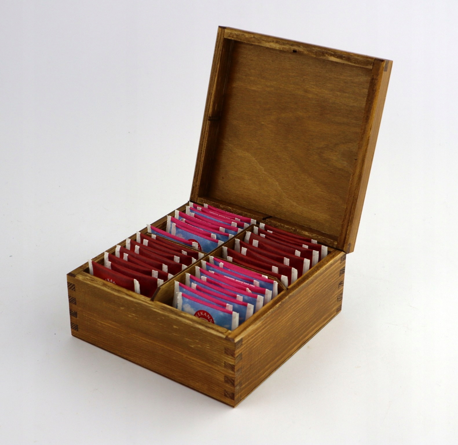 Коробка пофарбована плямою в відтінках світлого дуба. З іншого боку, безбарвний водяний лак, який використовується для захисту коробки, використовується для фарбування іграшок для дітей.