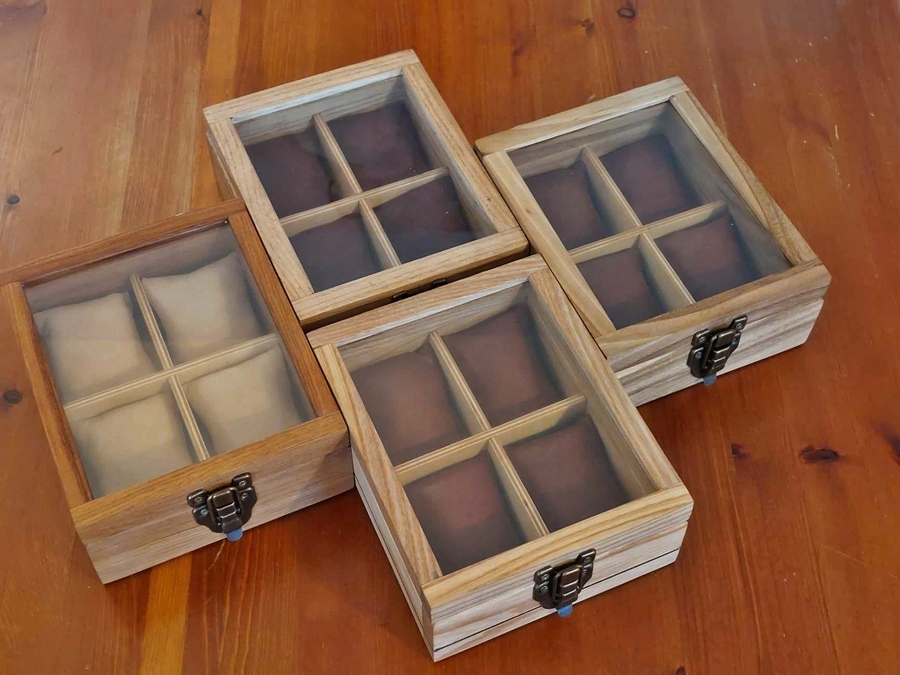 Можна вибрати тип застібки, петлі та іншу арматуру, деревину та його колір. Зробіть шафи та коробки для кишенькових годинників та інших індивідуальних замовлень.