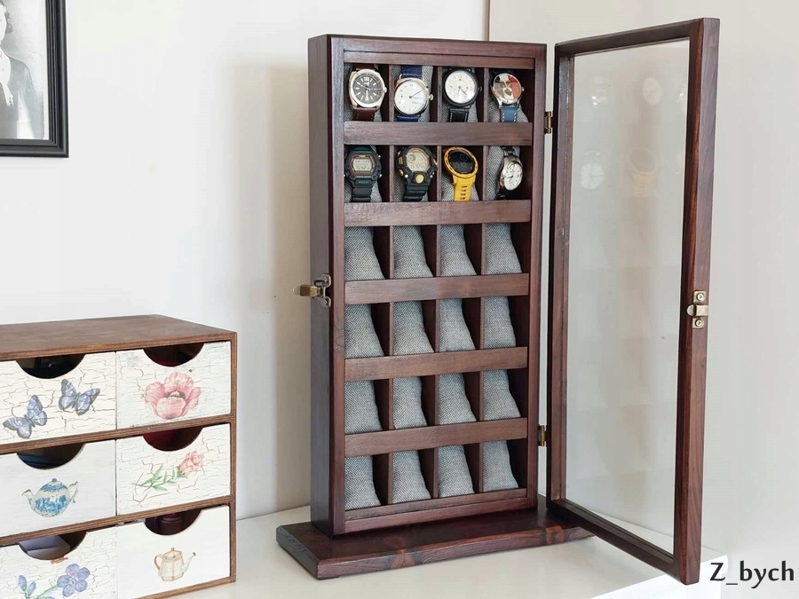 Коробка з коробки для 18 годинників деревина, виготовлена вручну в Польщі