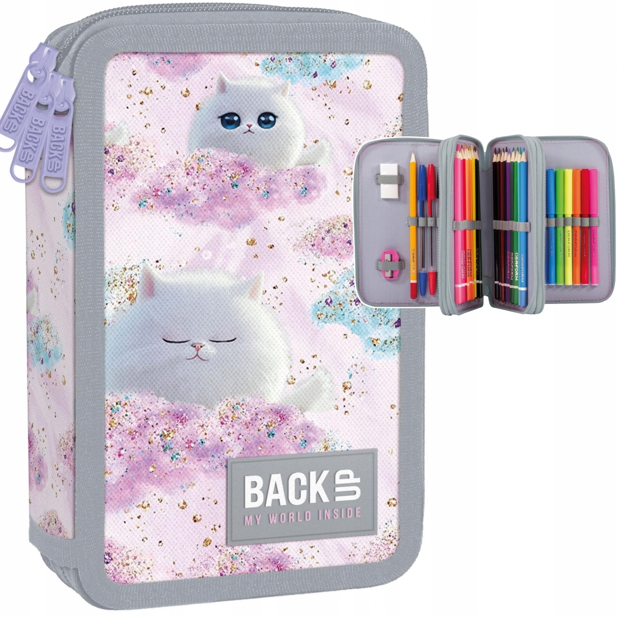 КОШЕНЯТА ПОТРІЙНИЙ ПЕНАЛ BACKUP 3 КОМ. З ЕКІПІРОВКОЮ ДЛЯ ДІВЧАТОК З КОШЕНЯМ