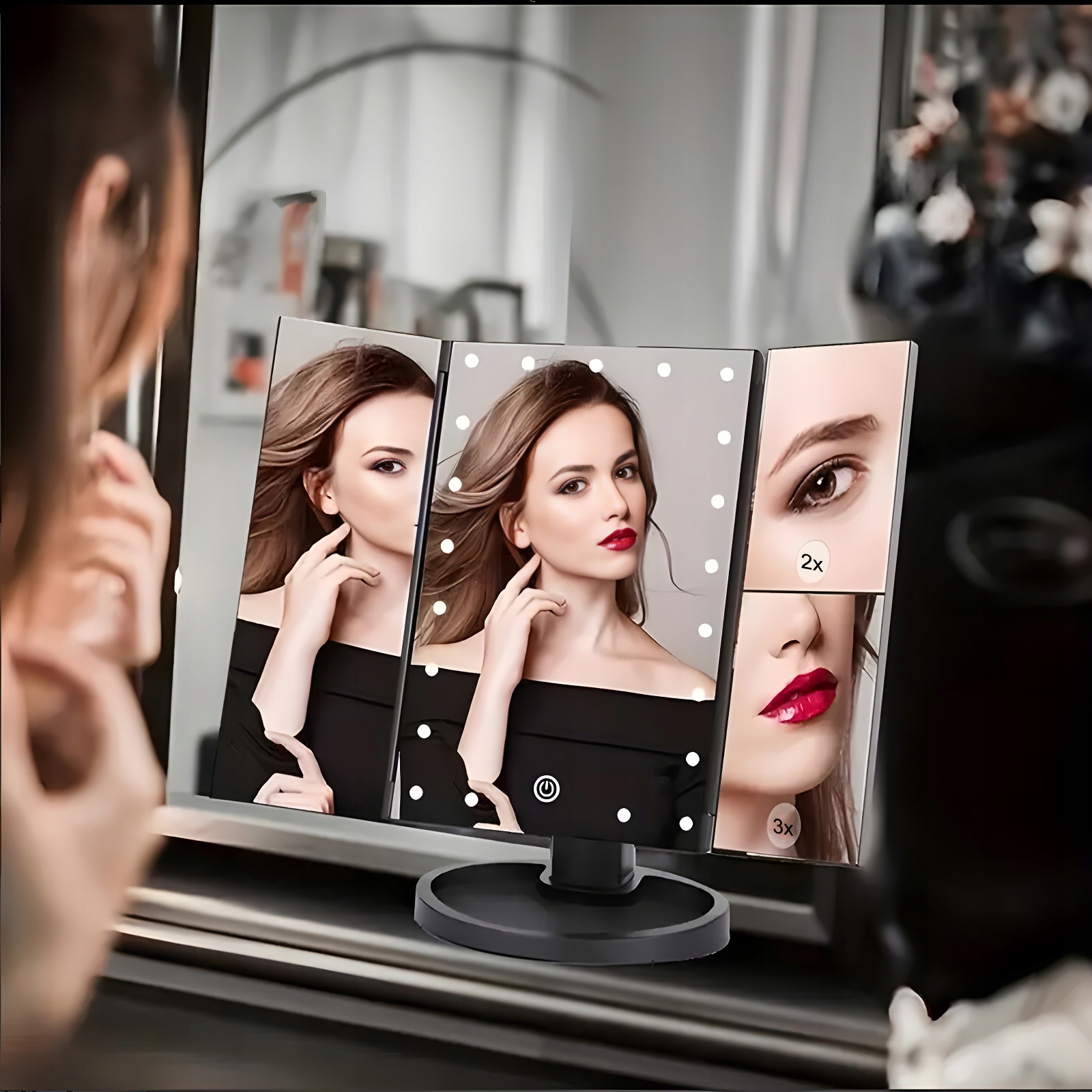КОСМЕТИЧНЕ ДЗЕРКАЛО З ПІДСВІТЛЕННЯМ, СКЛАДНИЙ LED, ЗБІЛЬШУВАЛЬНЕ МАКІЯЖНЕ