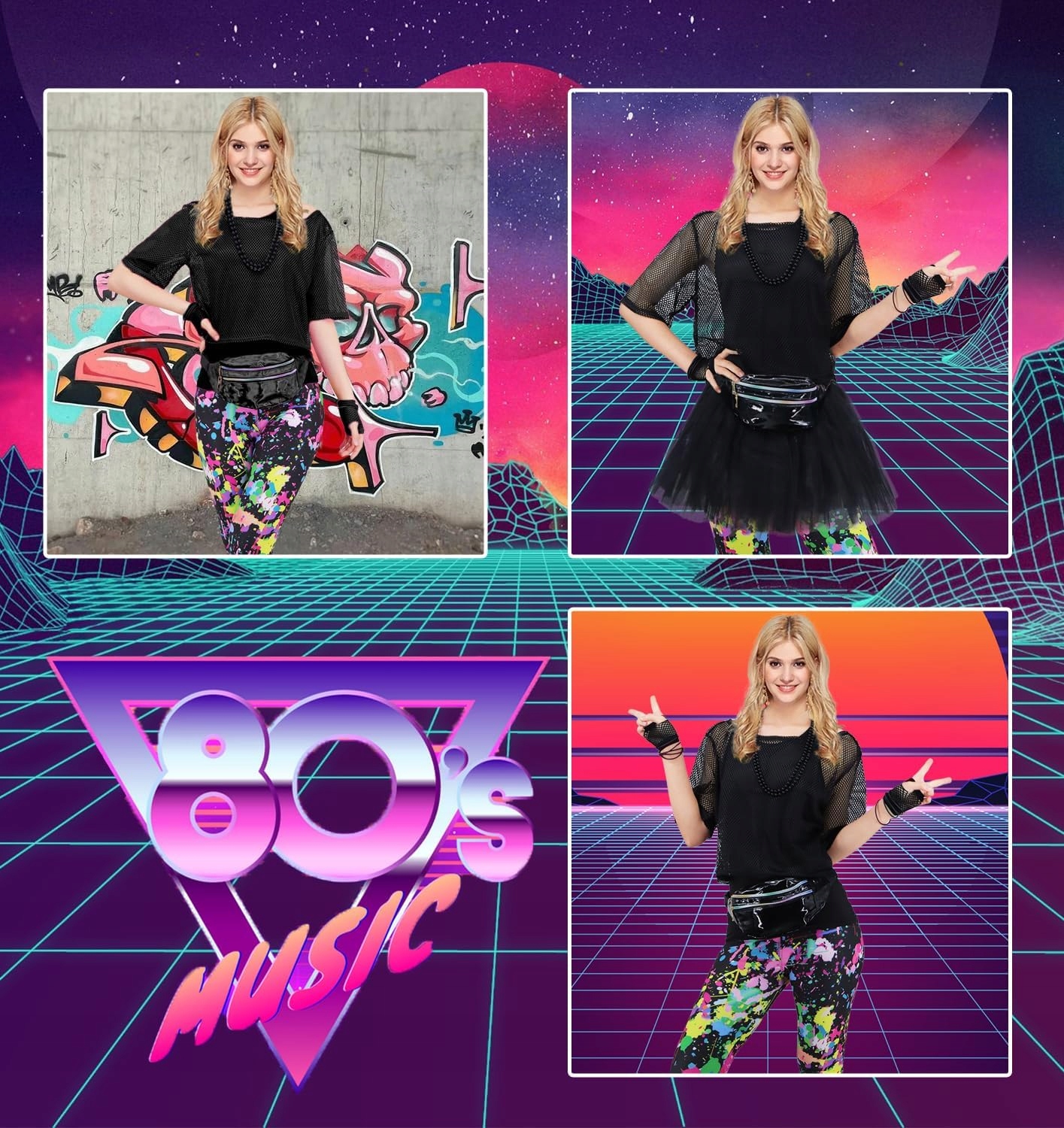Стильний, яскравий та очей -набір неонових аксесуарів, ідеально підходить для одягнених подій в атмосфері 1980 -х, дівочих вечорів, Хеллоуїна, кульок костюмів або тематичного дня народження.