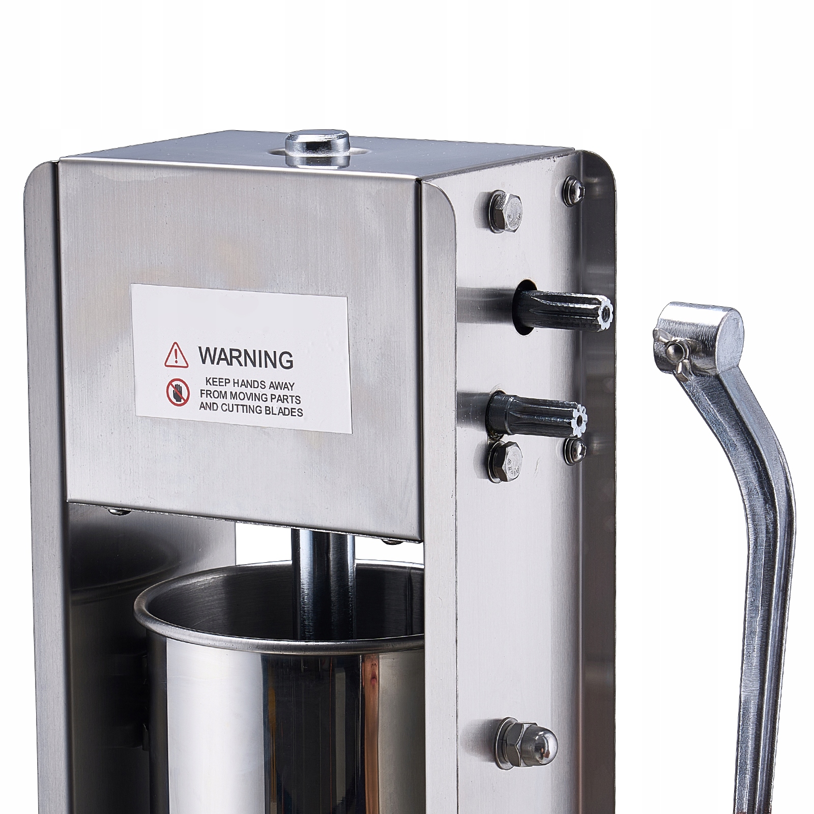 Цей 7-літровий (15 фунтів) ковбасні начинки оснащені вентиляційним клапаном, який виробляє суворо упаковані ковбаси з мінімальною кількістю бульбашок повітря. Під час начинки ковбасу можна відрегулювати на високу або невелику швидкість, щоб забезпечити ефективну роботу. В ідеалі підходить для комерційного використання в супермаркетах, ресторанах та інших місцях.