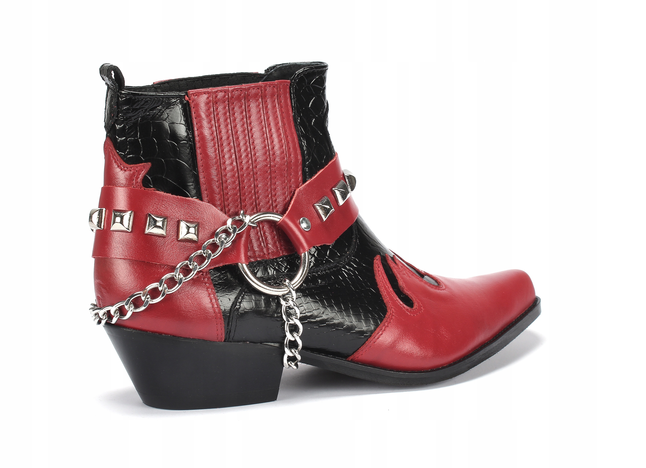 Ковбойські чоботи 630/k виготовлені з натуральної шкіри великої рогатої худоби, що значно полегшує взування ковбойських чобіт 2018 року, прикрашених ланцюжком і шпильками. p>