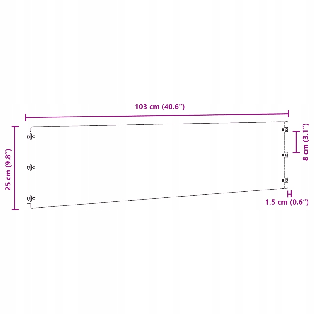 - Розміри (кожен шматок): 25 x 103 см (висота x довжина)