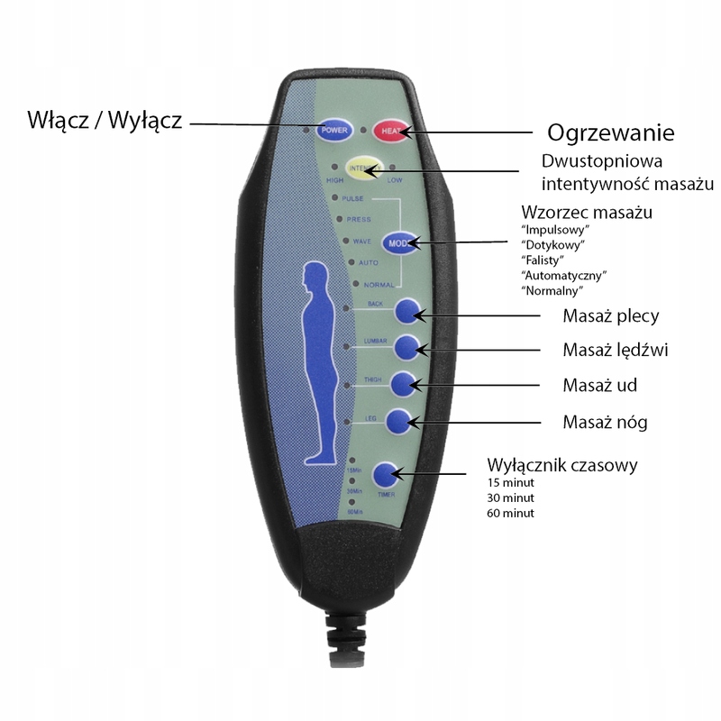 - 4 програми масажу: вибір зони спини, попереку, ніг, стегон.
