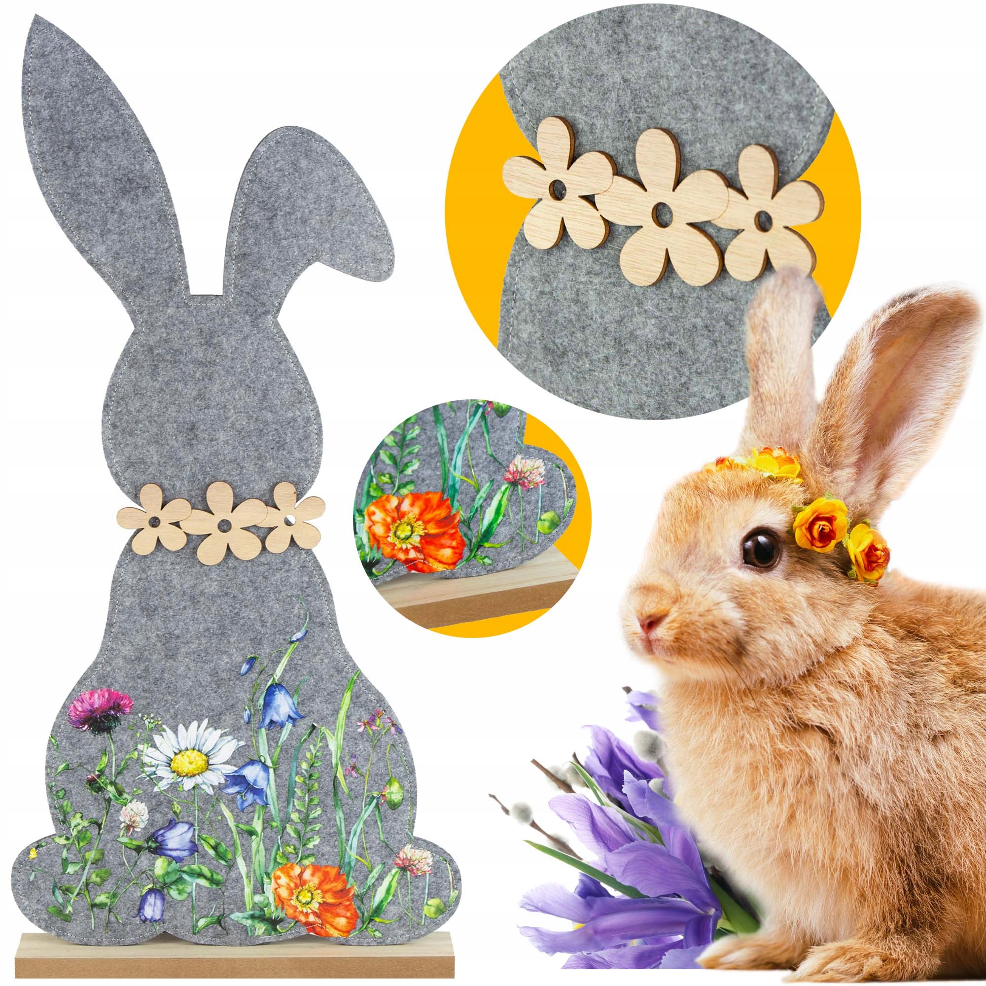 КРОЛИК ВЕЛИКОДНІЙ ЗАЄЦЬ ПРИКРАСА СТОЯЧА ПРИКРАСА ДЕРЕВ'ЯНА ПІДСТАВКА