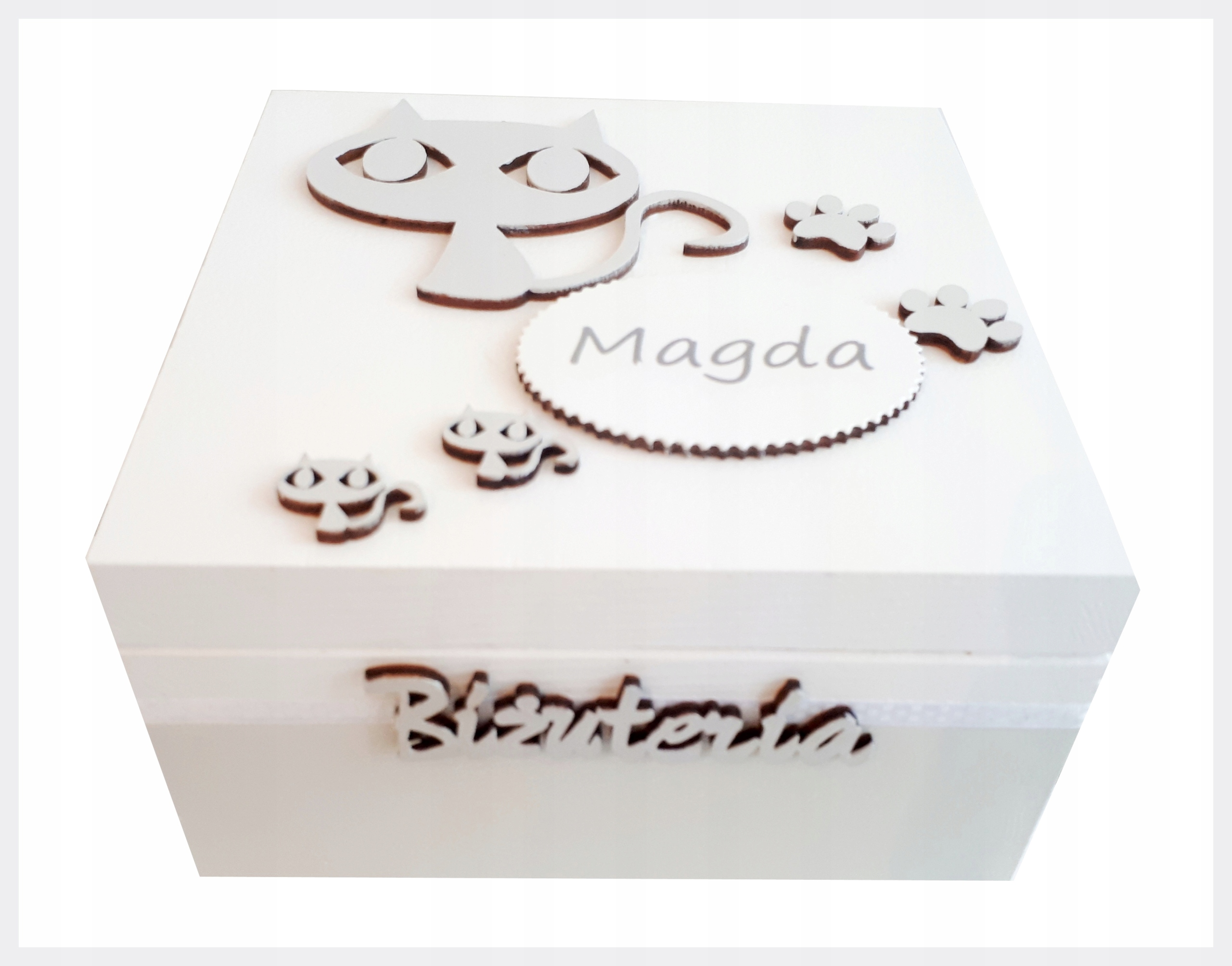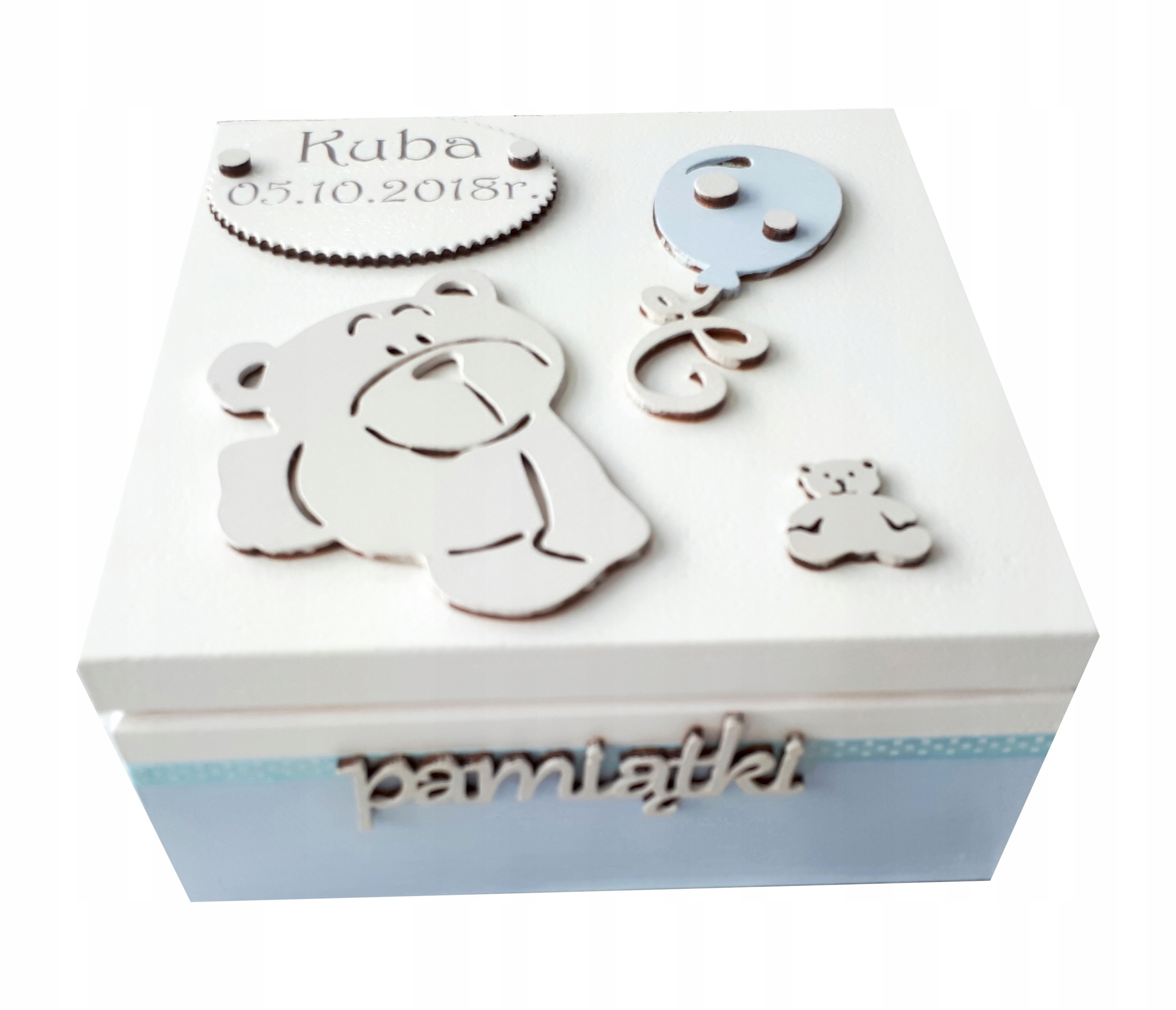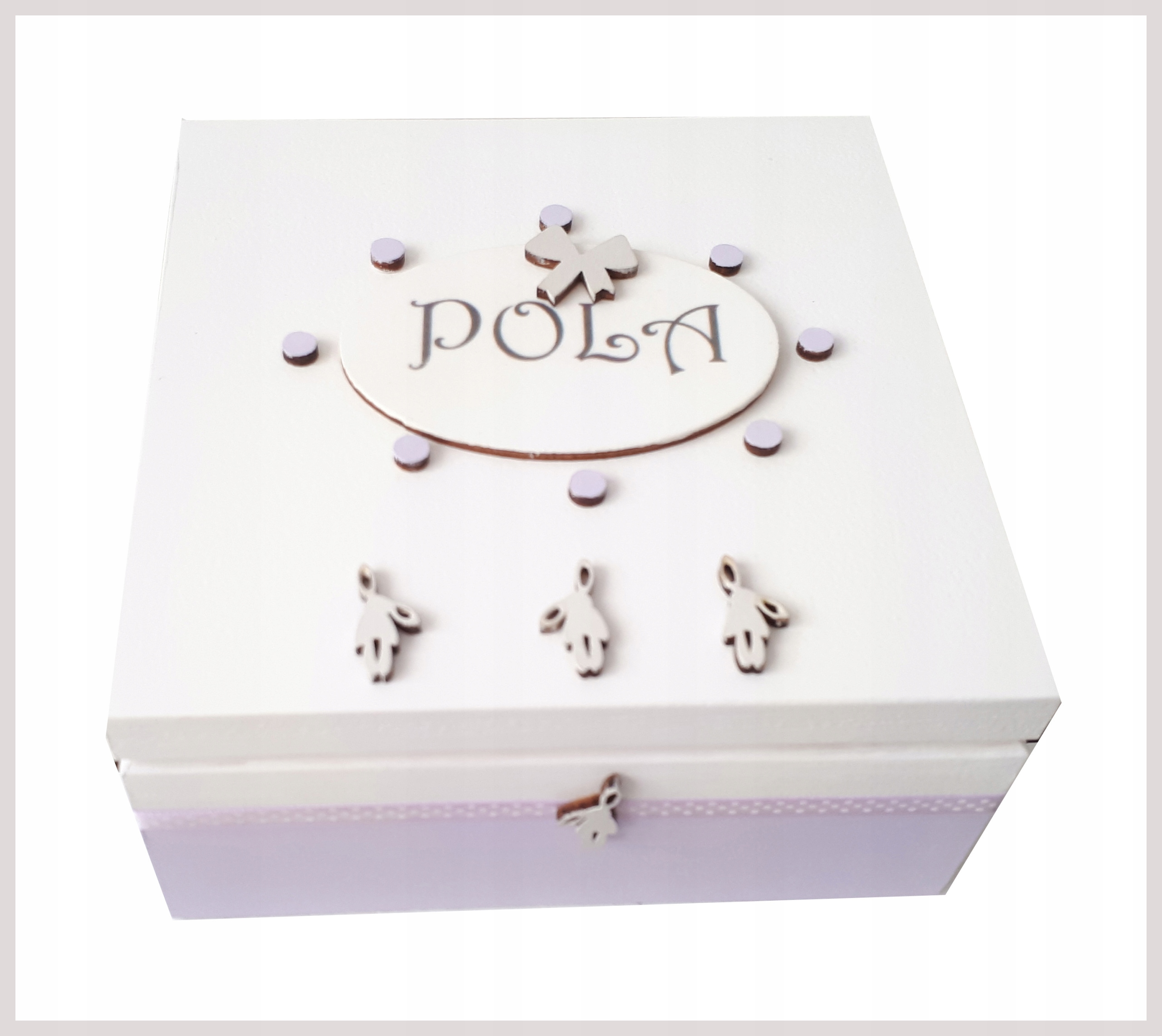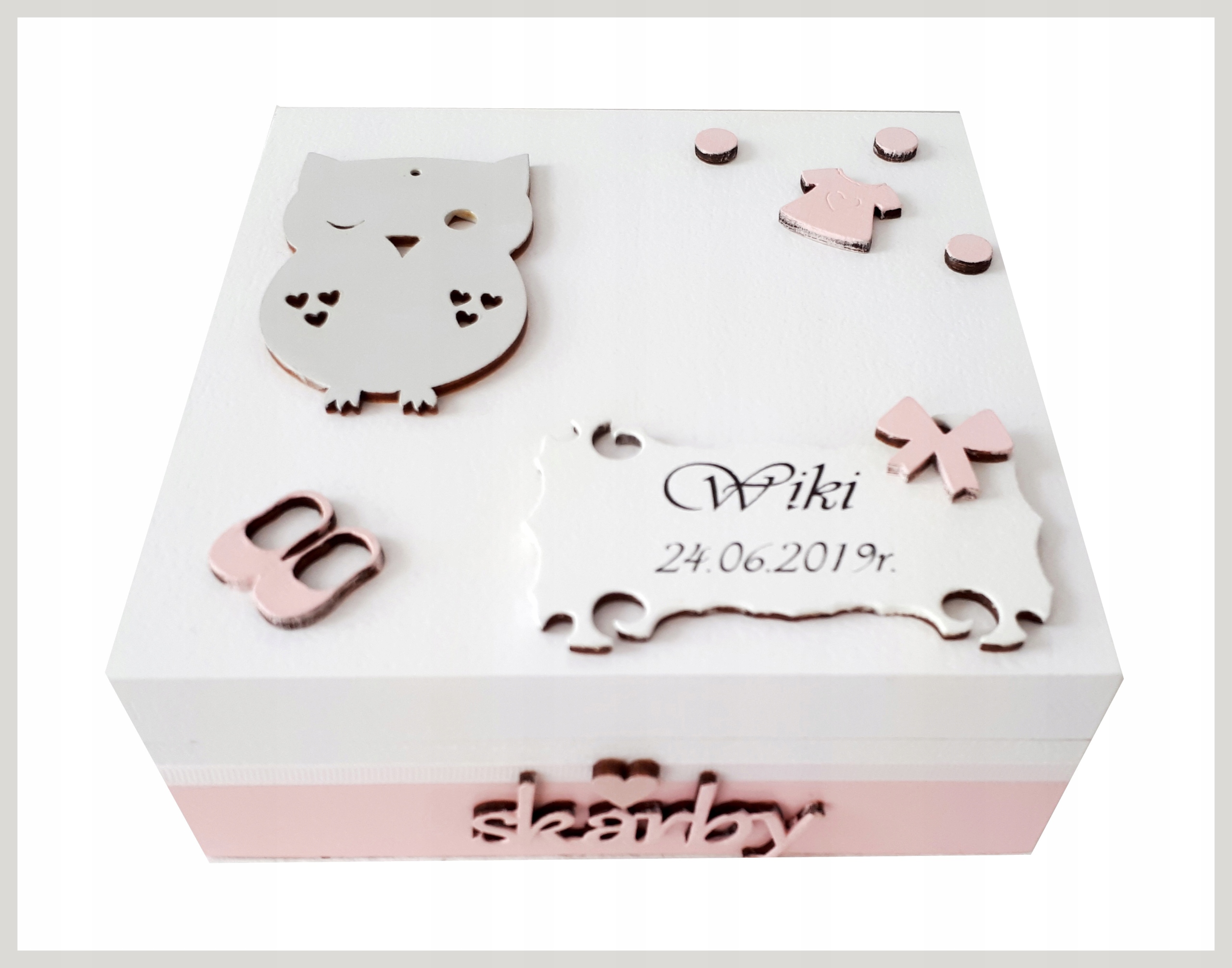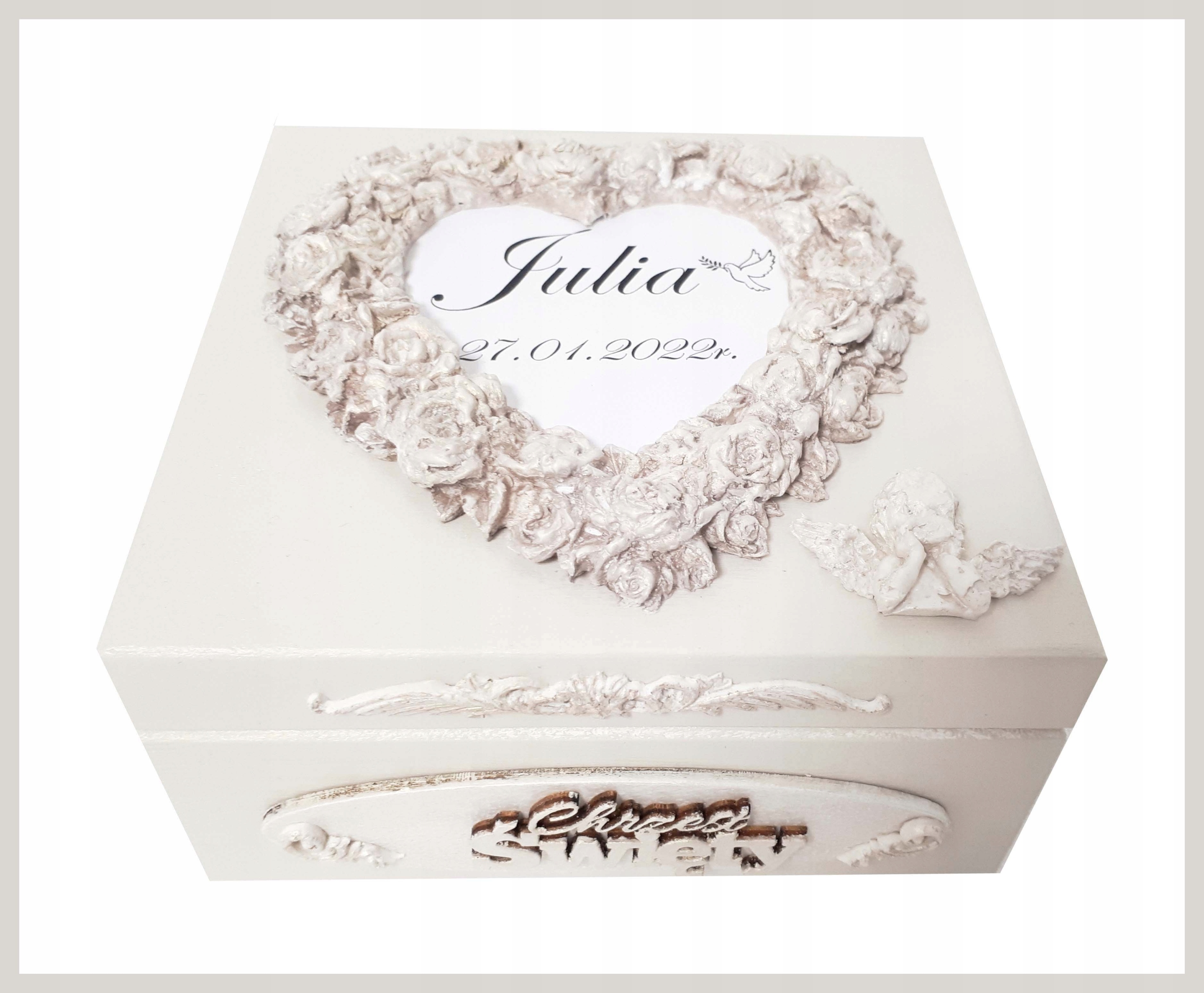 За запитом будь -яких кольорів та прикрас. Коробки - це чудовий подарунок для дитини з нагоди народження, хрещення чи дня народження. Персоналізована скринька - це також ідеальне місце для зберігання важливих сувенірів для матерів. Перша гвоздика, пасма волосся або смуга з лікарні коханої дитини, також повинна бути гідною, а не притиснутись до картонних короб;