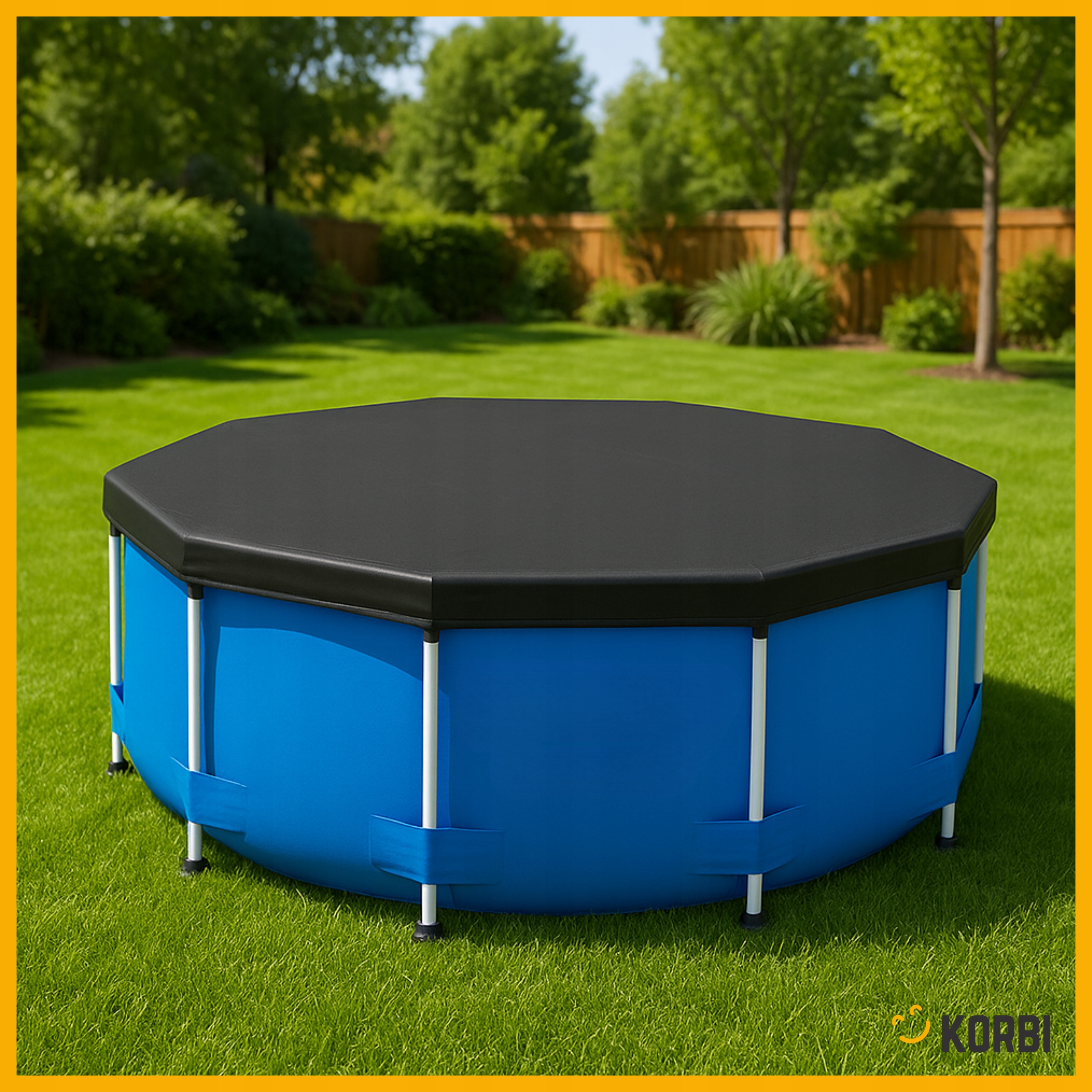 Круглий басейн. Великий брезент охоплює чорну кришку 366x366 см