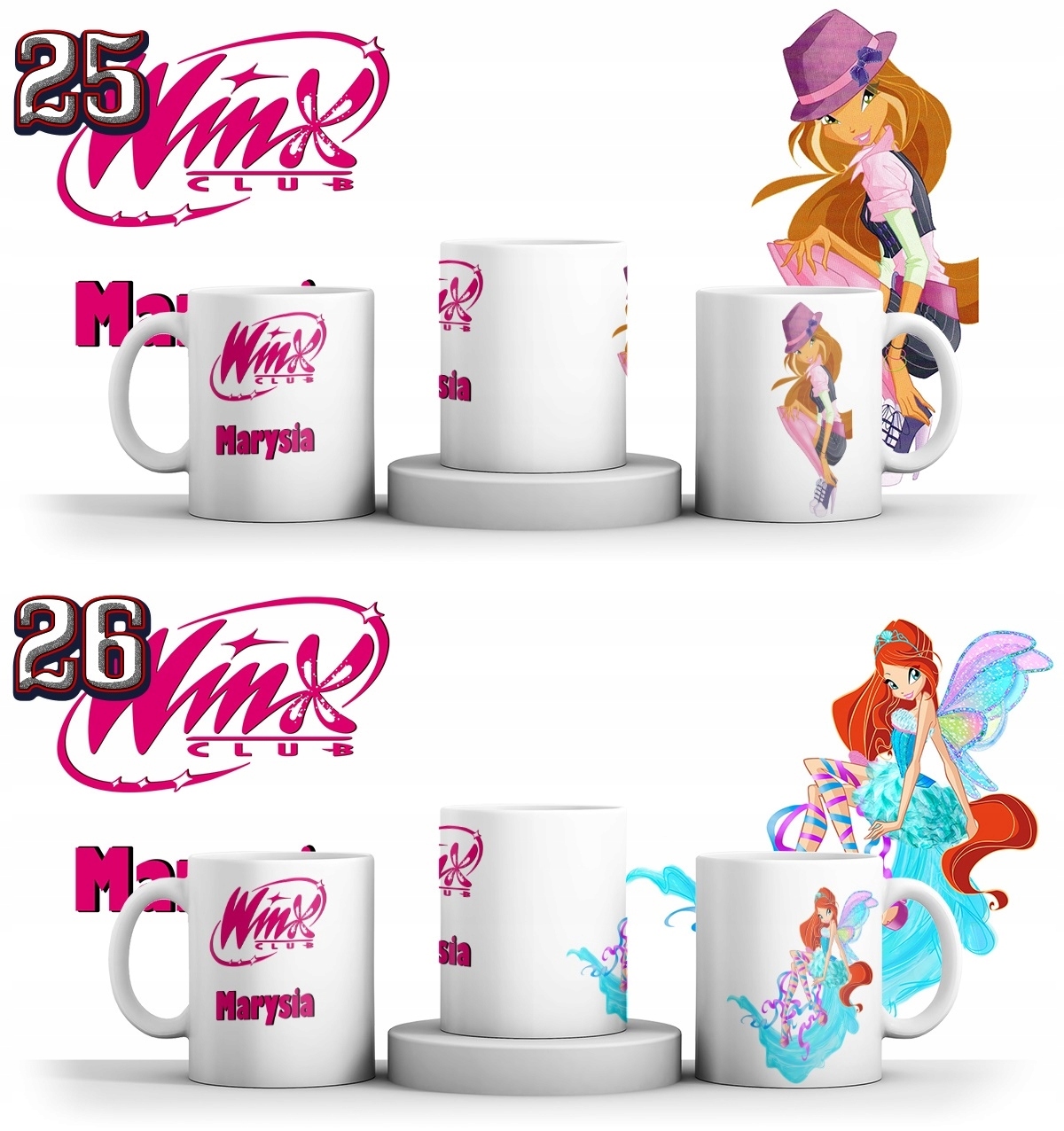 Біла кружка KLUB WINX KLUB WINX + можливість друку імені або іншого тексту на кухлі входить у вартість.