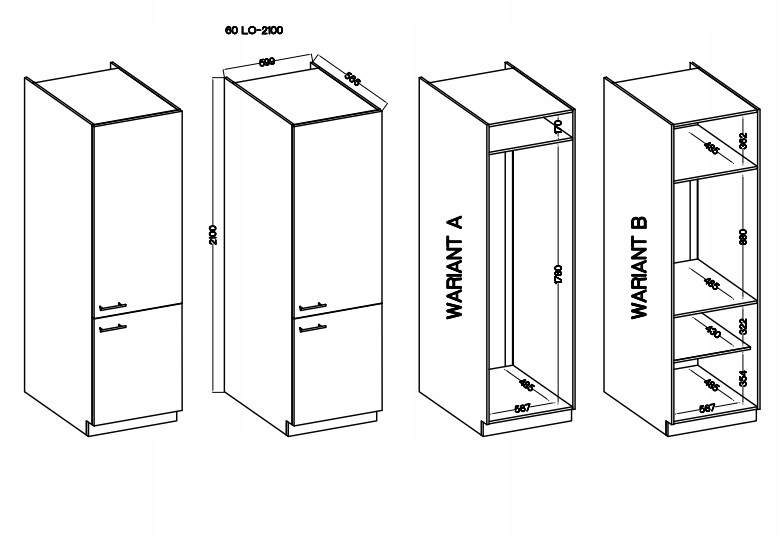 60 LO-210 2F - шафа висотою 60 см, висотою 210 см для холодильника