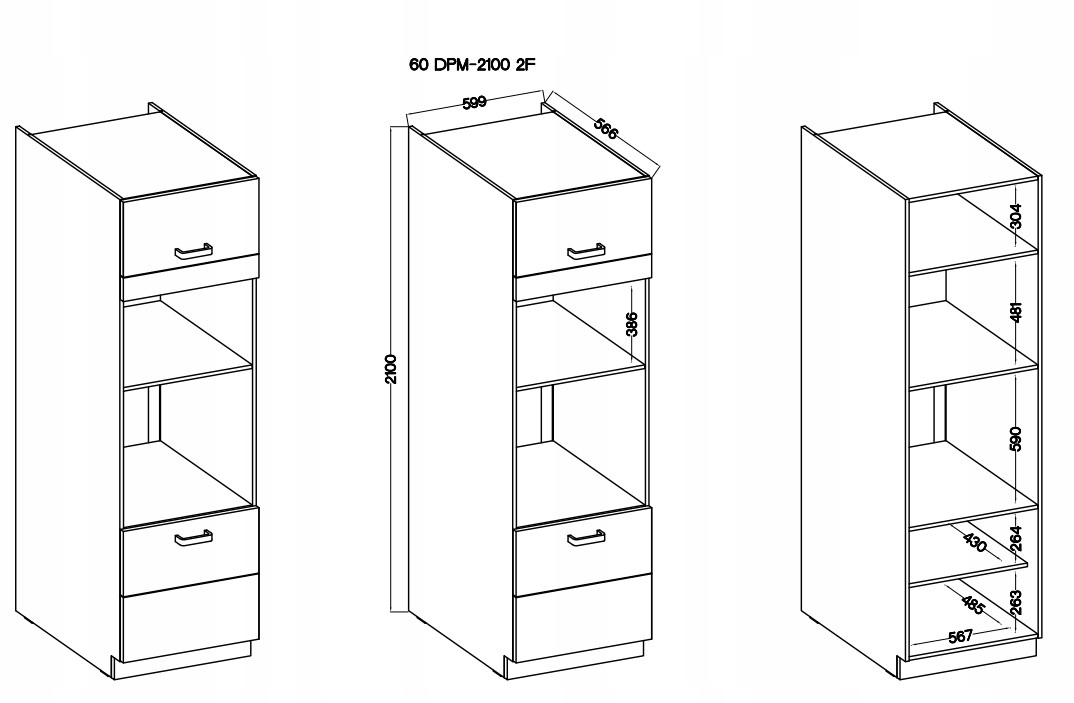 60 DPM-210 2F - Шафа 60 см для установки духовки та мікрохвильової печі