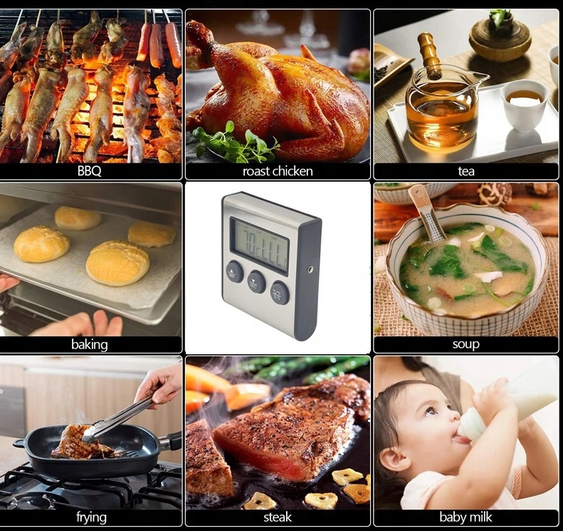 Електронний РК -термометр використовується для температури м'яса, рідини, тортів, гриль тощо.
