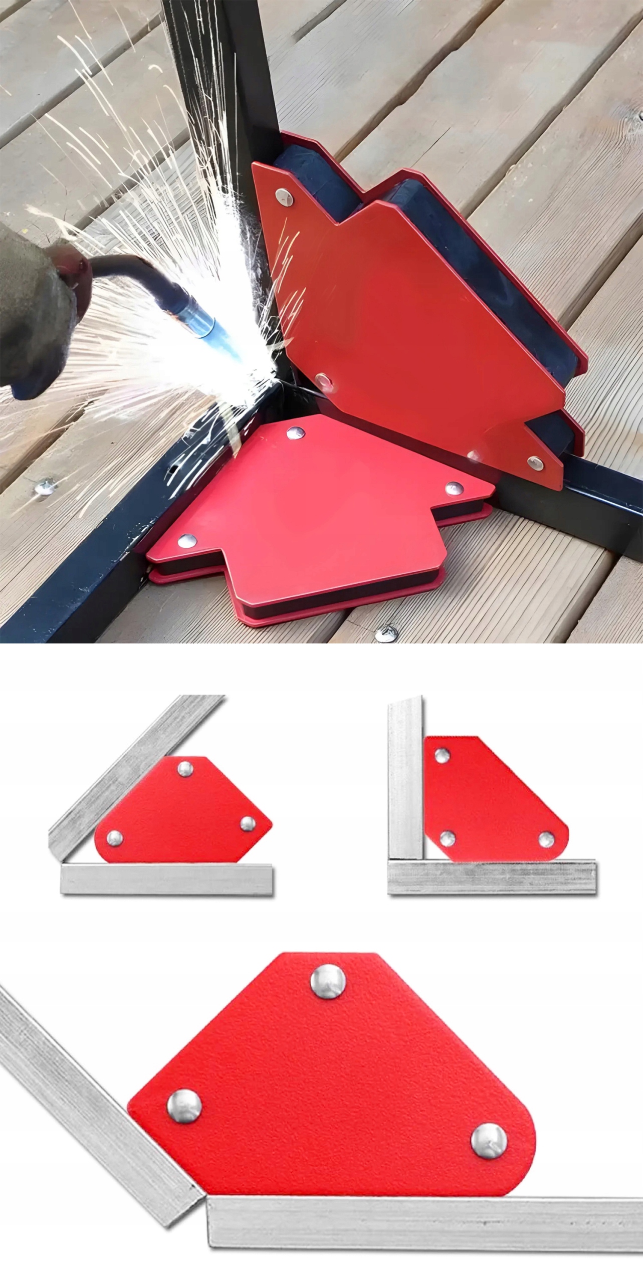Набір дозволяє працювати в трьох основних позиціях. Це означає, що вам не потрібно мати кілька окремих інструментів - достатньо одного кута, щоб точно поєднати елементи під найчастіше використовуваними кутами. Ідеальне рішення як для професійних зварювань , так і для любителів.