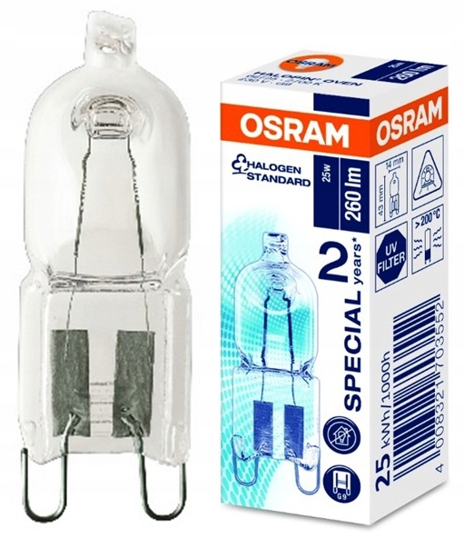 МИ ПРОПОНУЄМО оригінальну галогенну лампу 25 Вт для освітлення духовок, цоколь G9 від відомого бренду OSRAM