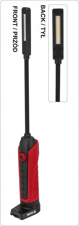 Світильник для майстерні YATO, завдяки гнучкому, тонкому плечу та двосторонньому COB діоду, дозволяє освітлювати важкодоступні місця. Завдяки стійкій магнітній основі її також можна використовувати як настільну лампу. Додатковою перевагою є висока, максимальна світловіддача 500lm і плавне регулювання, що дозволить вам вибрати освітлення відповідно до виконуваної діяльності та рівня заряду акумулятора. Лампа оснащена літій-іонним акумулятором ємністю 2600mAh, який забезпечить роботу до 16 годин. Надзвичайна стійкість до води, пилу та падінь гарантується класом герметичності IP65 і класом механічного захисту IK07