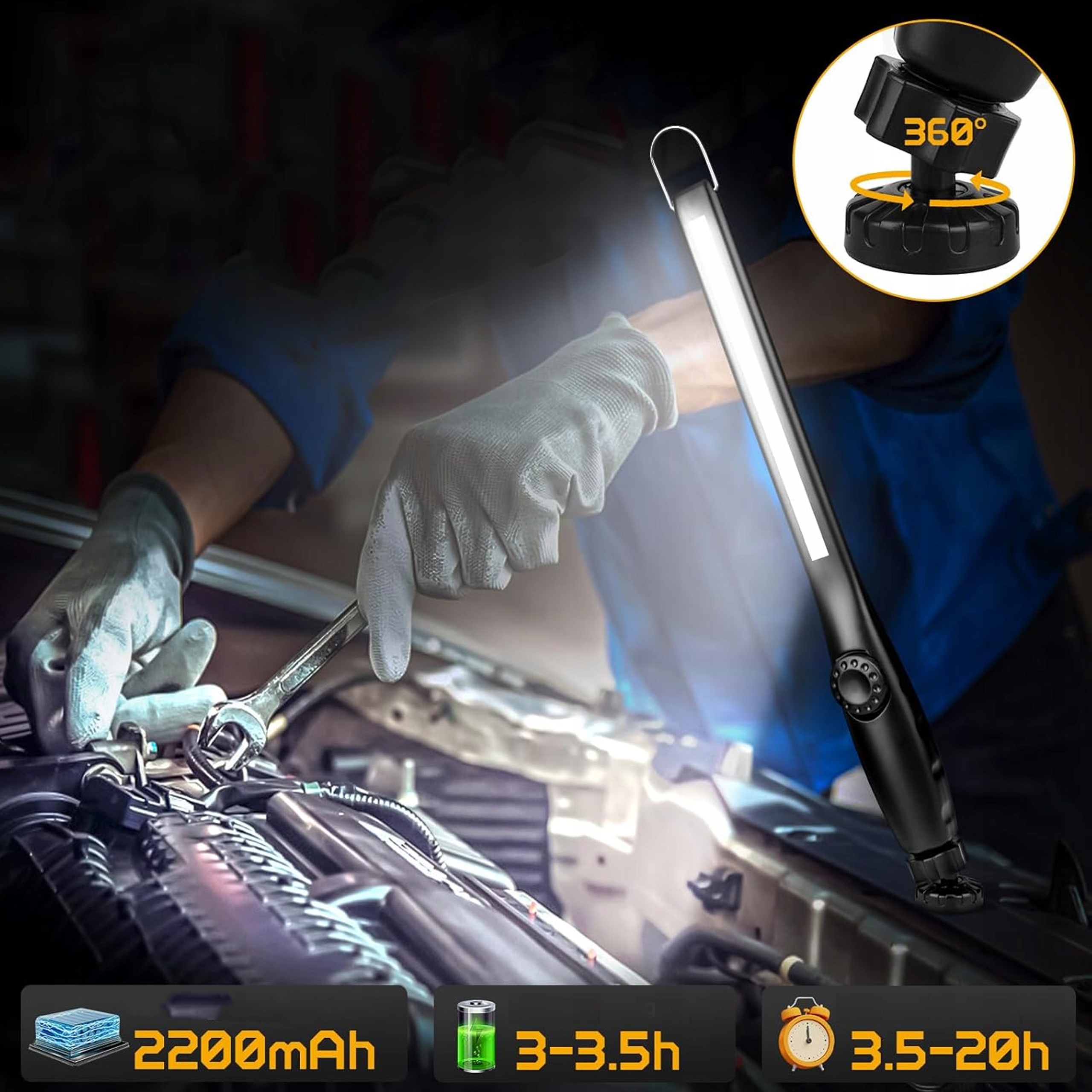 Лампа для майстерні ПОТУЖНИЙ ліхтарик для майстерні 800лм РЕГУЛЮВАННЯ з магнітом