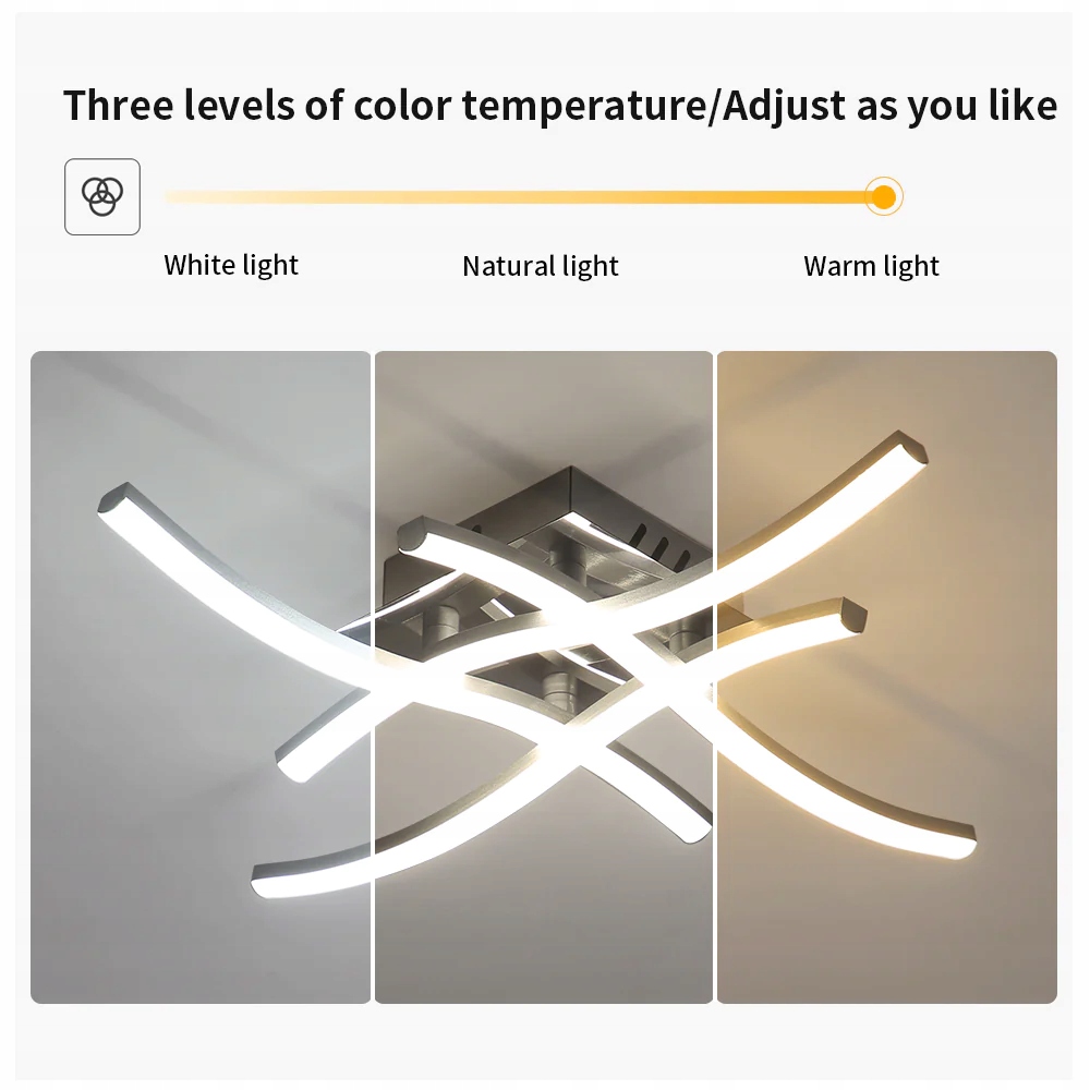 【Мінімалістичний дизайн і застосування】: Сучасний світлодіодний стельовий світильник має простий стиль і перехресний дизайн із чотирма хвилястими смужками, що дуже мистецько. Погану установку в кімнаті можна лише організувати, але персоналізувати кімнату, ввівши в кімнату принцип мистецтва. Застосовуйте до спальні, вітальні, кабінету, кухні, їдальні, офісу, галереї,