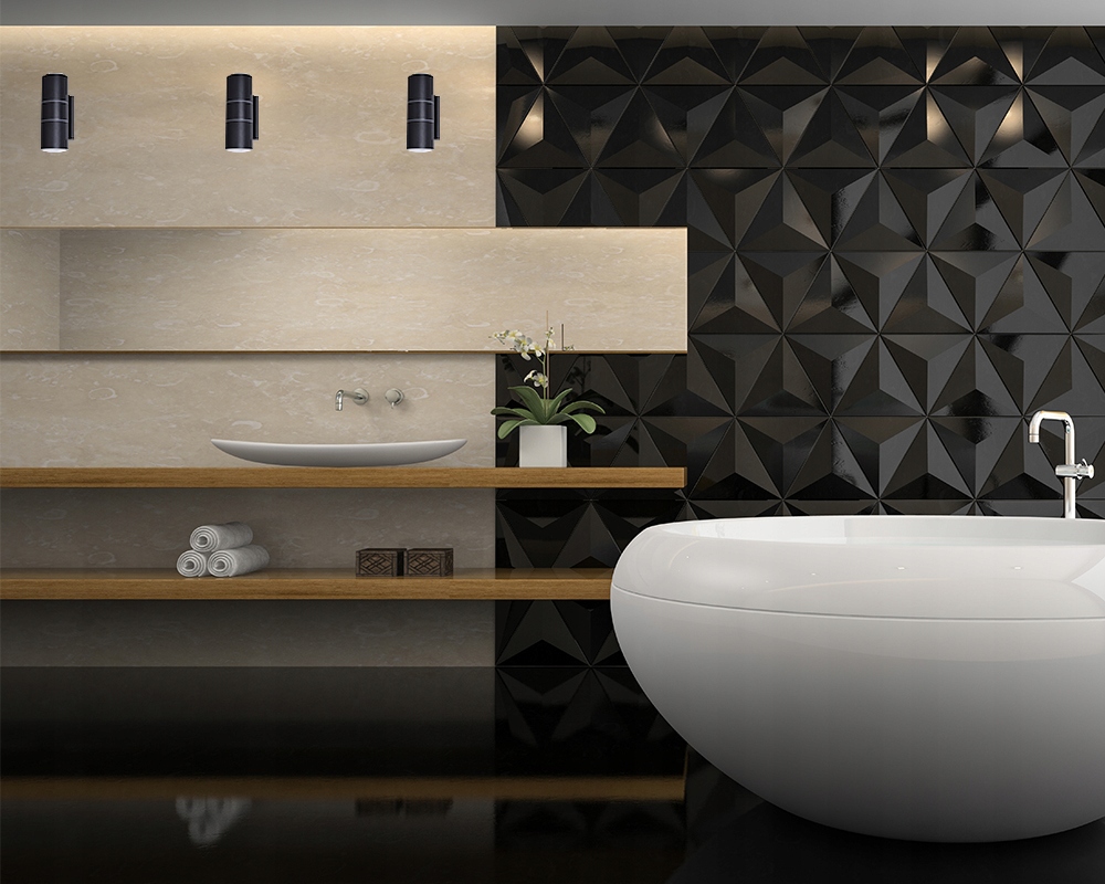 Настінний світильник циліндричний двосторонній - чорний (без джерела світла, без лампочки).