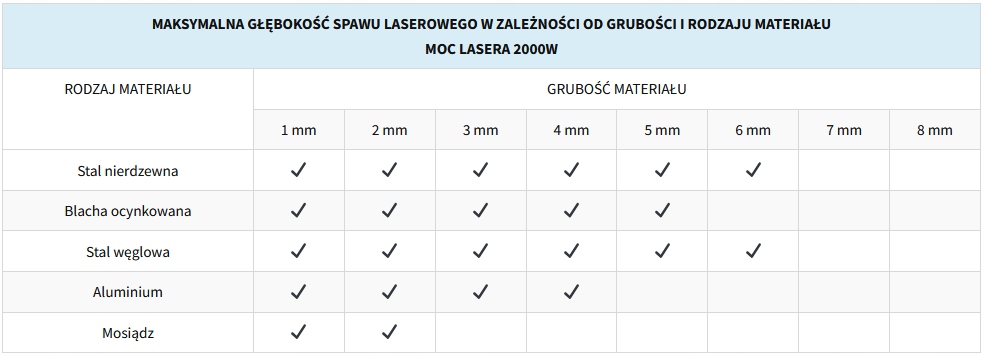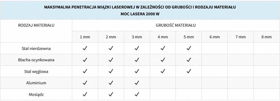 Лазерна потужність: 2000 Вт
