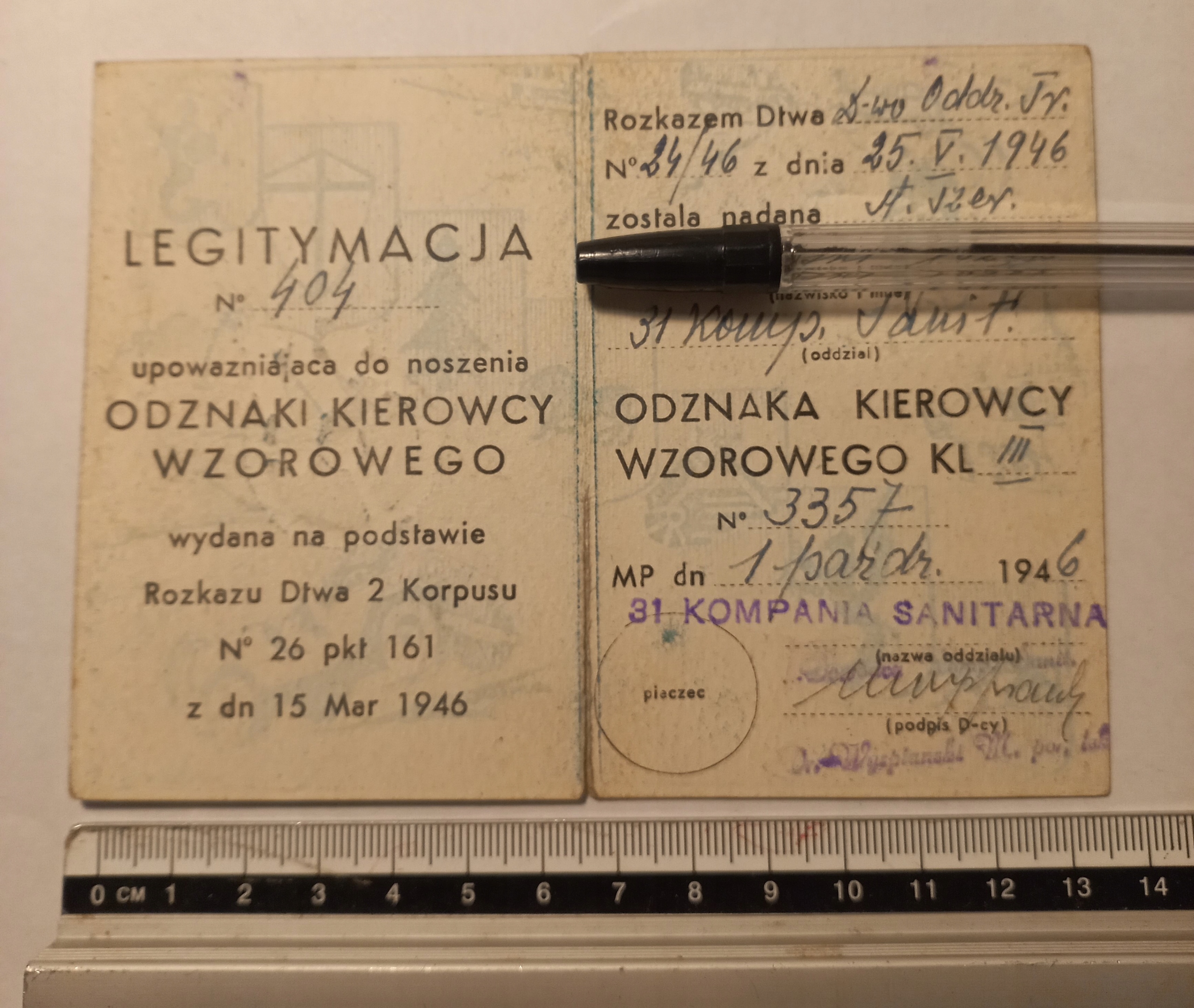 LEGITYMACJA DO ODZNAKI KIEROWCY PSZ KOLUMNA SANITARNA MEDYK LEKARZ