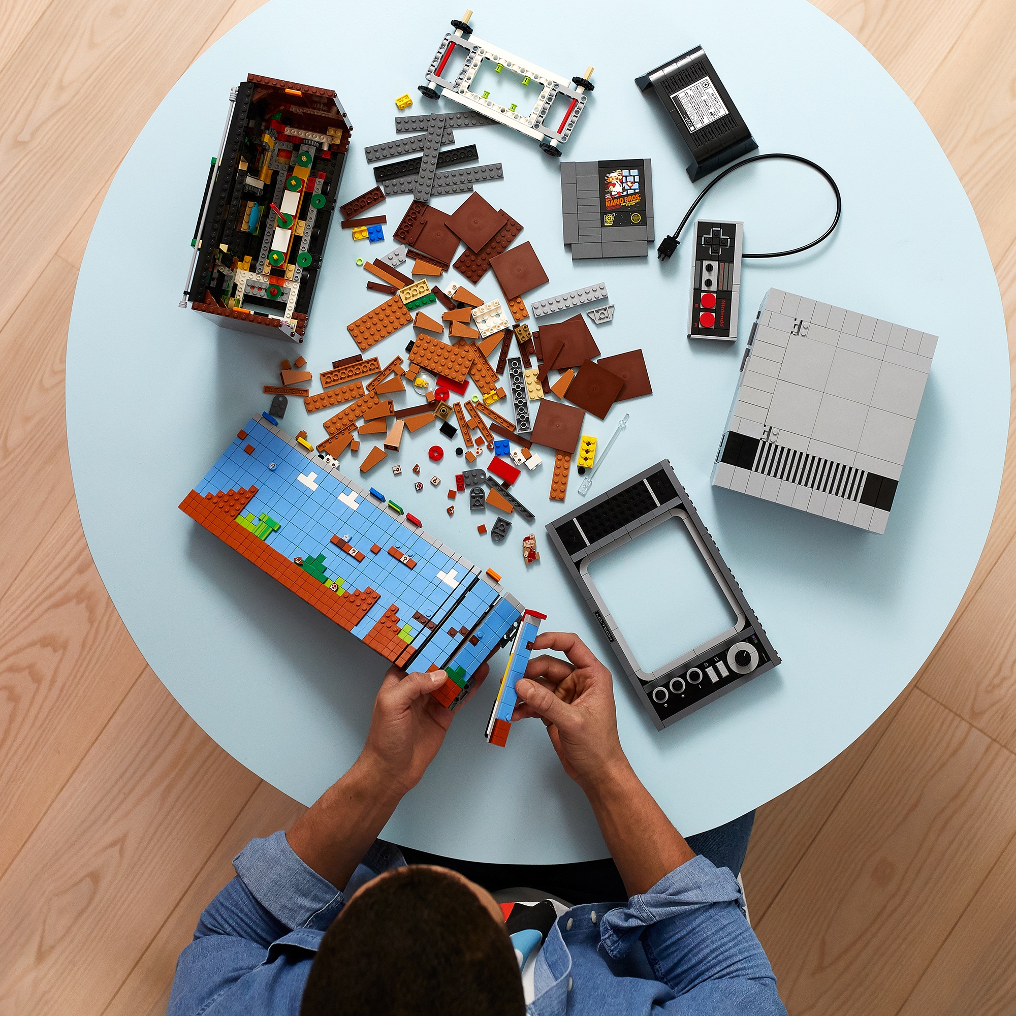 - Справжні деталі консолі NES відтворено в стилі LEGO® — набір включає контролер і отвір слот для ігрового картриджа, який можна побудувати з блоків. Простір також має реалістичну функцію блокування для фанатів Super Mario Bros.™.