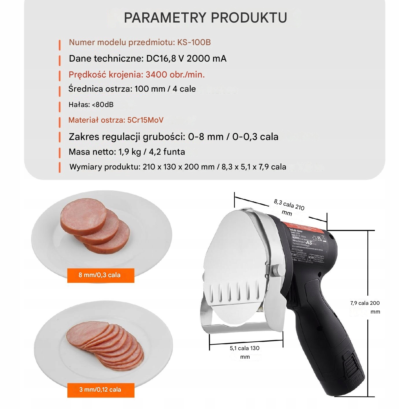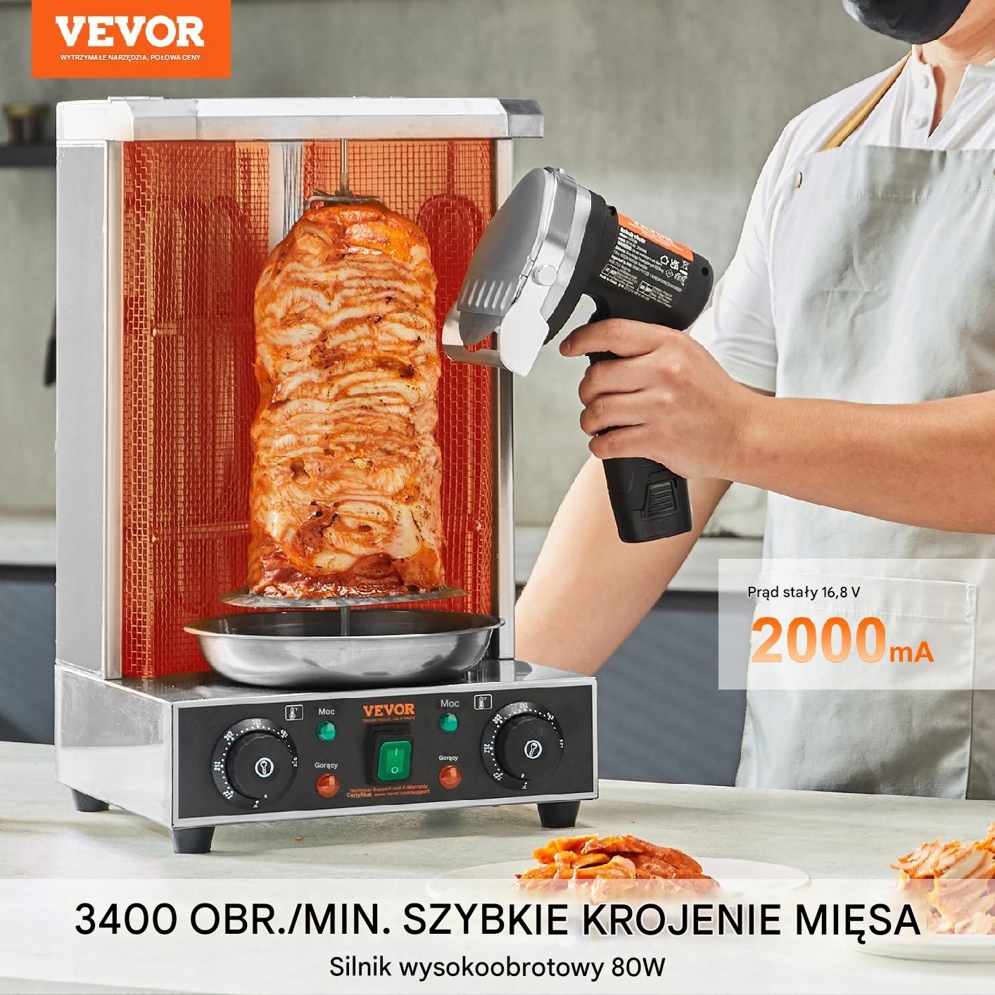 Двигун 80 Вт і гострий лезо дозволяє швидко і плавно різати м'ясо, значно підвищуючи ефективність роботи. Цей професійний розріз означає, що процес підготовки шашлику працює швидко та ефективно.