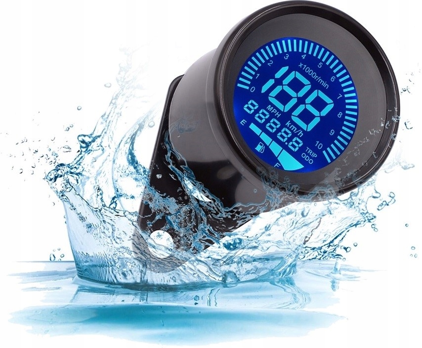 Пристрій водонепроникний, що значно підвищує комфорт і безпеку використання. Незалежно від погодних умов, ви контролюєте швидкість, поточний пробіг, оберти двигуна та рівень палива!