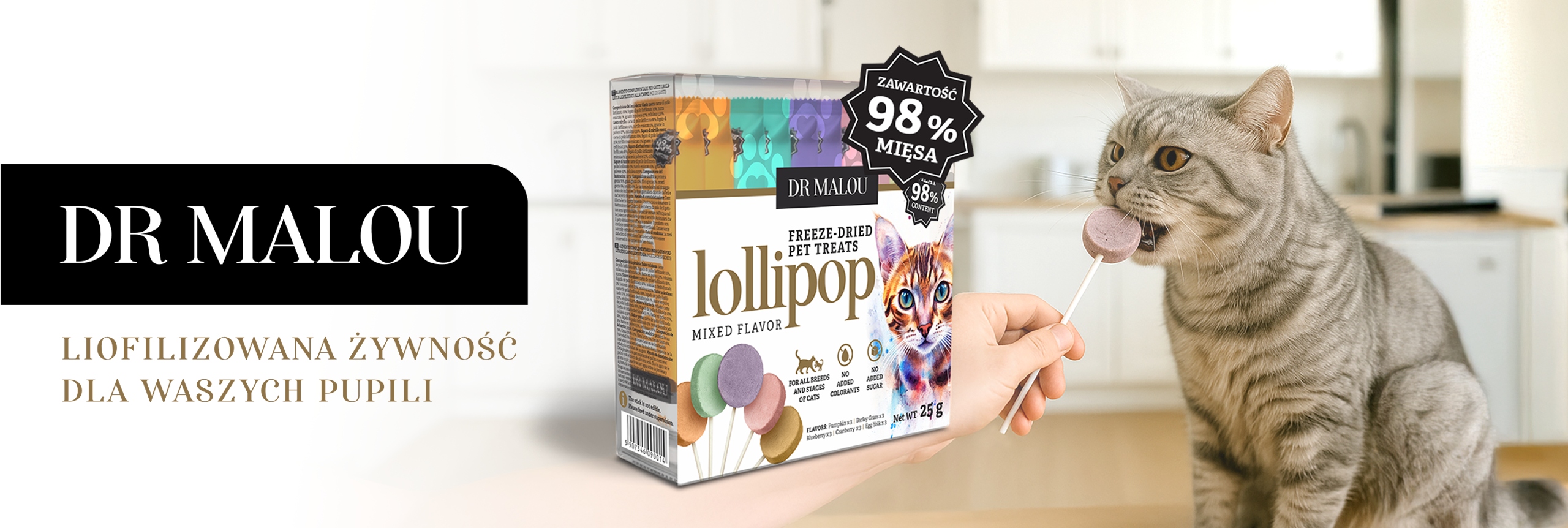 Dr Malou Lollipops - це не тільки їжа . Це також форма веселощів і спосіб стимулювати поведінку . Лизання заспокоює кішку, допомагаючи йому заспокоїтися і відпочити. Це також запобігає нудьзі!