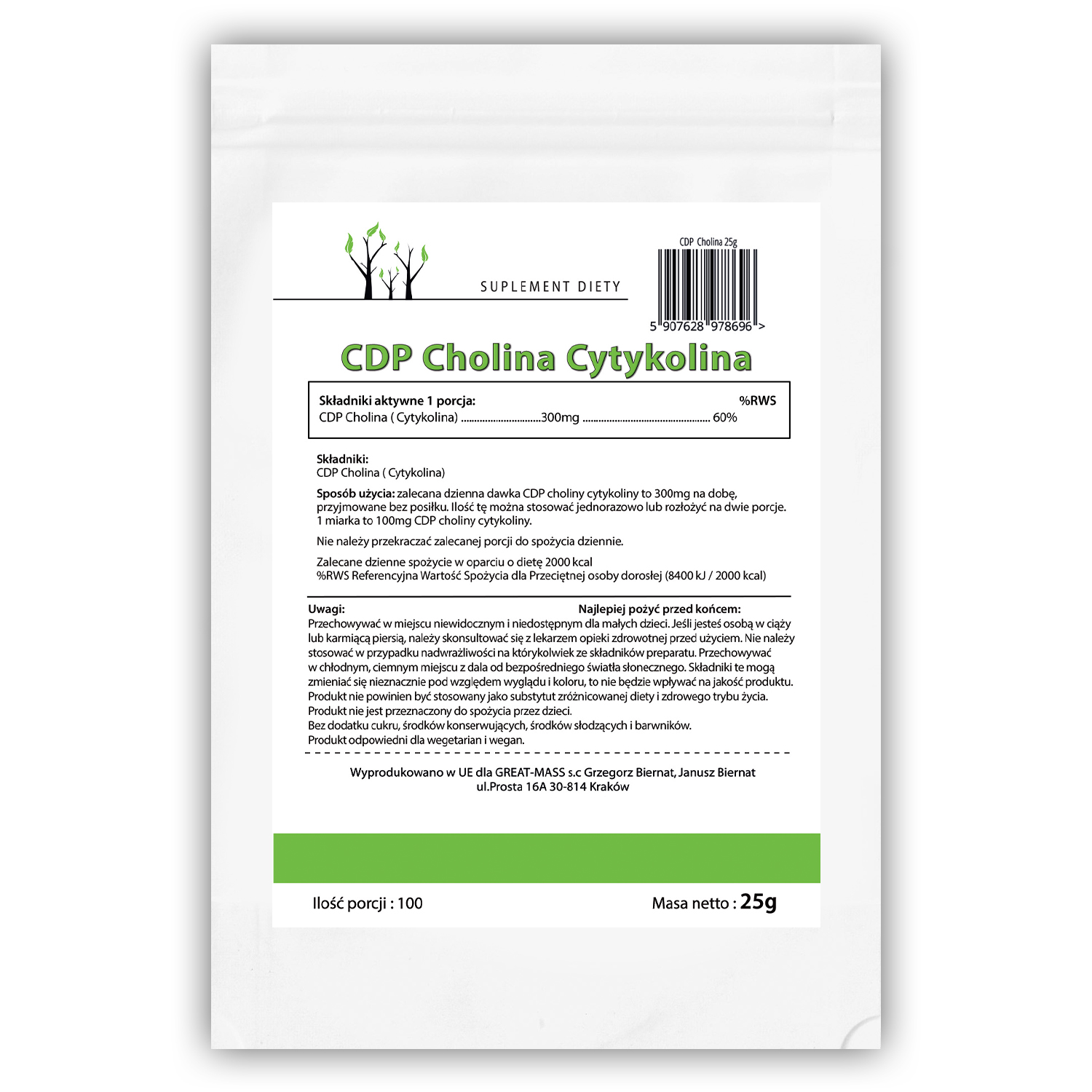 Рекомендована щоденна доза CDP Citicoline холін становить 300 мг на день, приймається без їжі. Ця сума може бути використана один раз або розповсюджуватись на дві частини. 1 MIARKA - 100 мг CDP Cytykolin Choline.