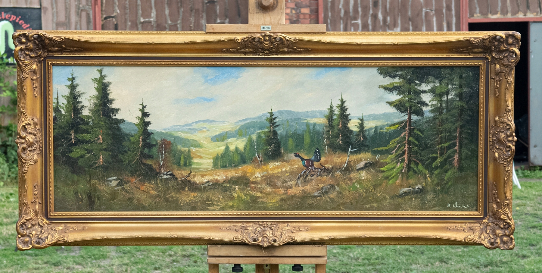 Лісовий пейзаж з фазаном, чудова картина нафти на полотні з Німеччини