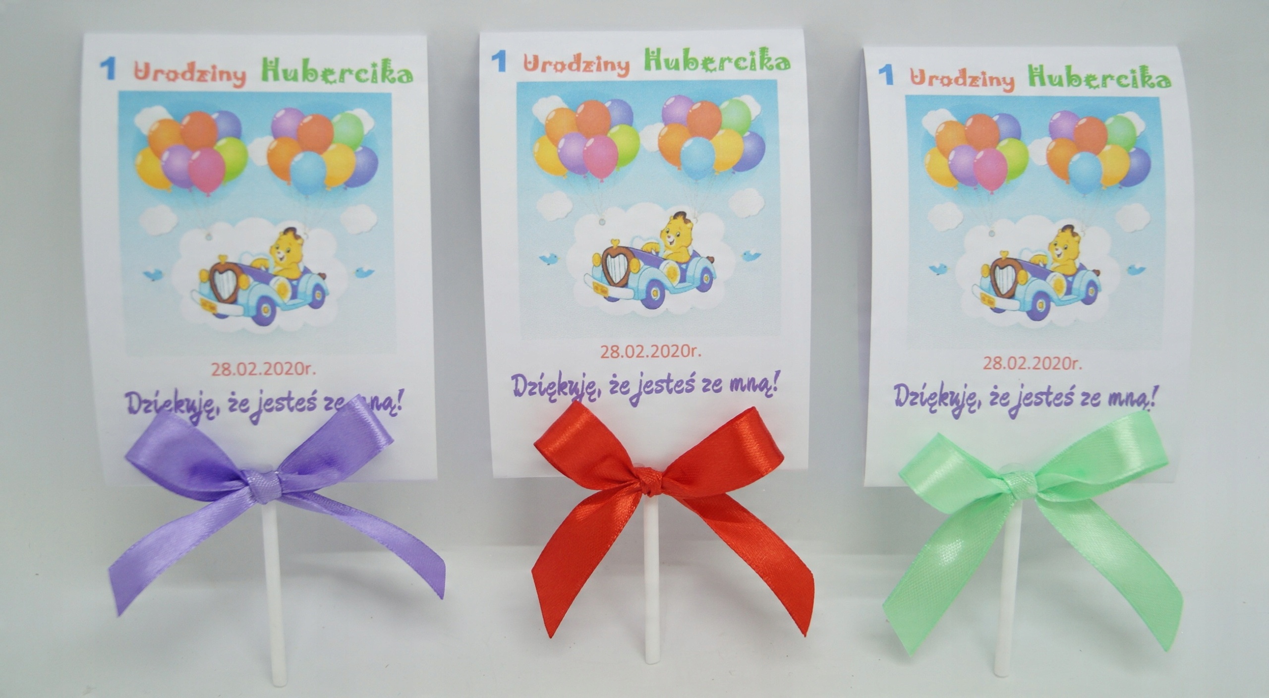 Льодяники перев'язані стрічкою з прикріпленими зображеннями відповідно до церемонії (вкажіть назву, колір стрічки та номер малюнка)